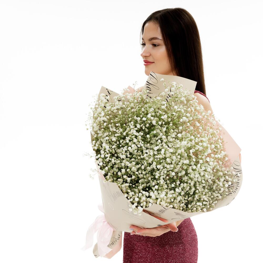 Гипсофила - 15 шт. Лента атласная - 2 шт. Упаковка дизайнерская - 3 шт.