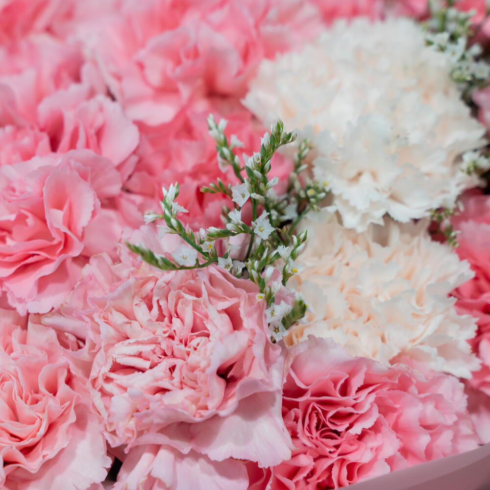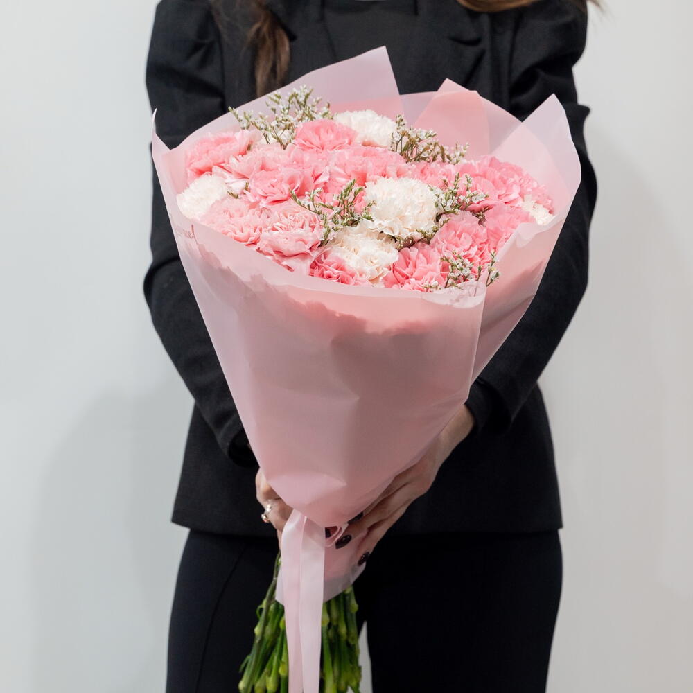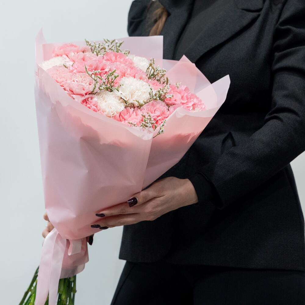 Диантус - 29 шт. Упаковка дизайнерская - 1 шт. Лимониум Белый - 3 шт.