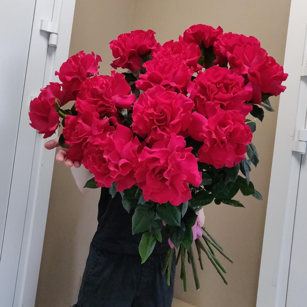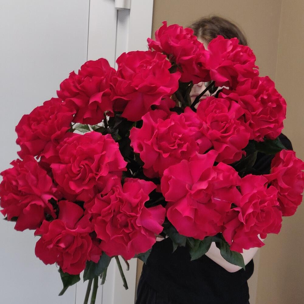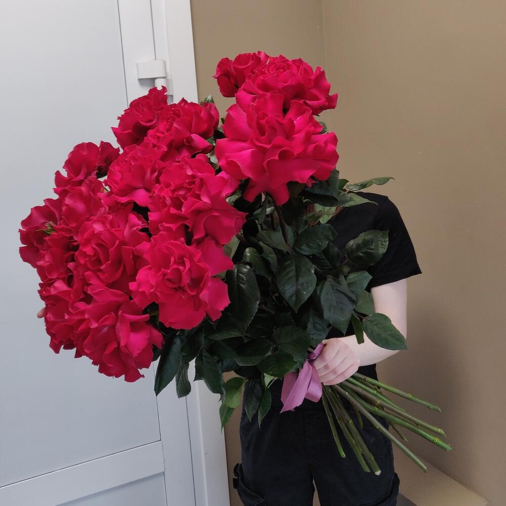Шикарный букет высоких французских вишневых роз роз.Премиум сорта французких роз с огромными бутонами. Инструкция по уходу, Важно! Розы требуется поставить в высокий уровень теплой воды, примерно 10 см от бутона, предварительно подрезав стебли наискосок.