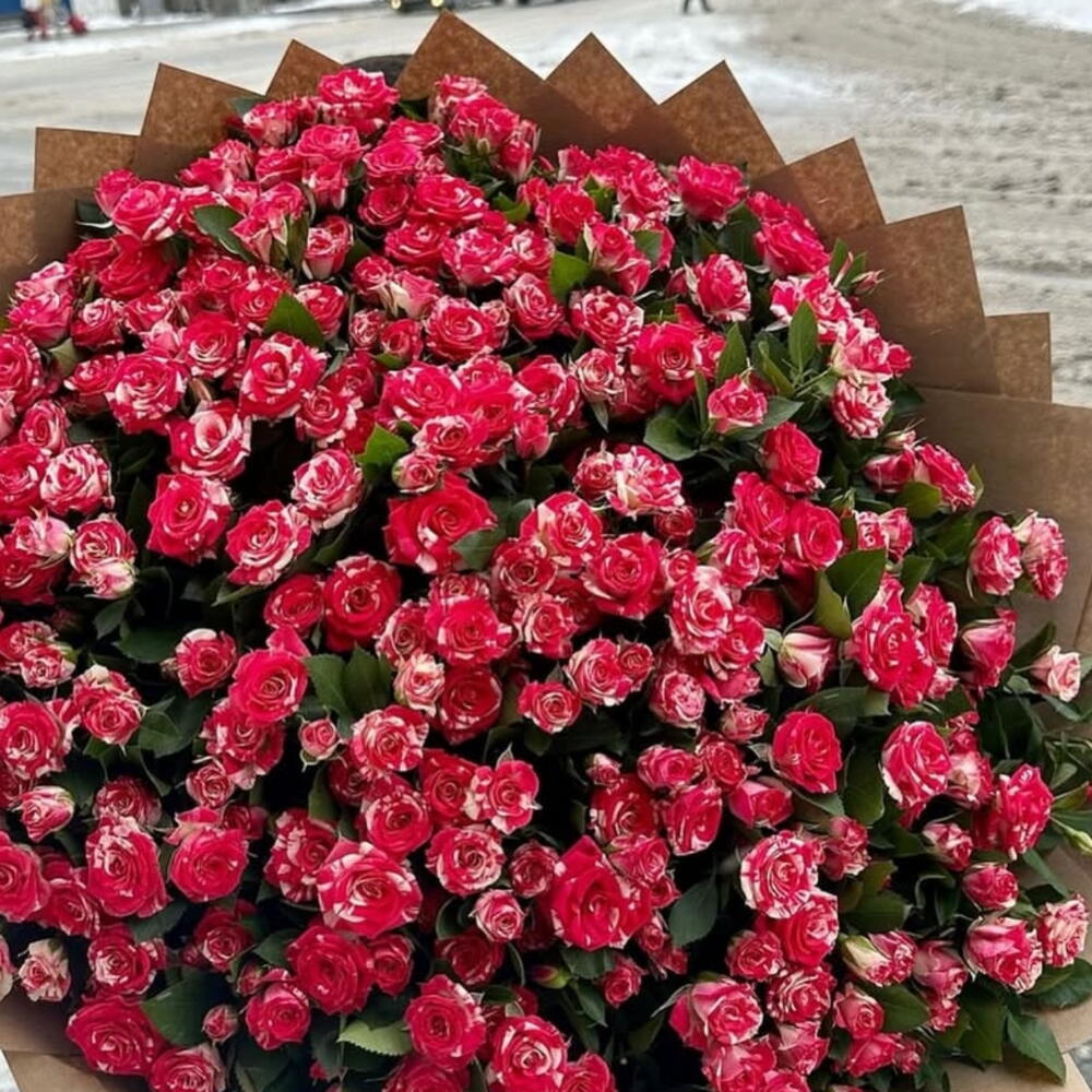 Наши преимущества * Личный менеджер, который курирует заказ от начала до вручения * Согласование фото букета перед отправкой и возможность внести изменения по вашему желанию * Дополнительные подарки — сладости, шары, помощь в организации сюрпризов * Красивая упаковка, аквабокс и поздравительная открытка — бесплатно Прекрасный свежий букет из кустовых премиальных роз в дизайнерской упаковке с быстрой доставкой по городу в течение часа — отличный способ порадовать близкого человека, устроив сюрприз. Такой букет подойдёт ✓ Для любимой девушки или супруги ✓ Для мамы или родных ✓ Для подруги или коллеги на 8 марта или 14 феврал ✓ Для свадебных торжеств и юбилеев