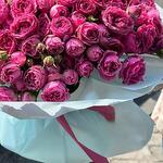 Лента атласная - 1 шт. Упаковка дизайнерская - 1 шт. Открыточка с вашими пожеланиями - 1 шт. хорошее настроение - 1000 шт. розы кустовые пионовидные ветка - 19 шт.