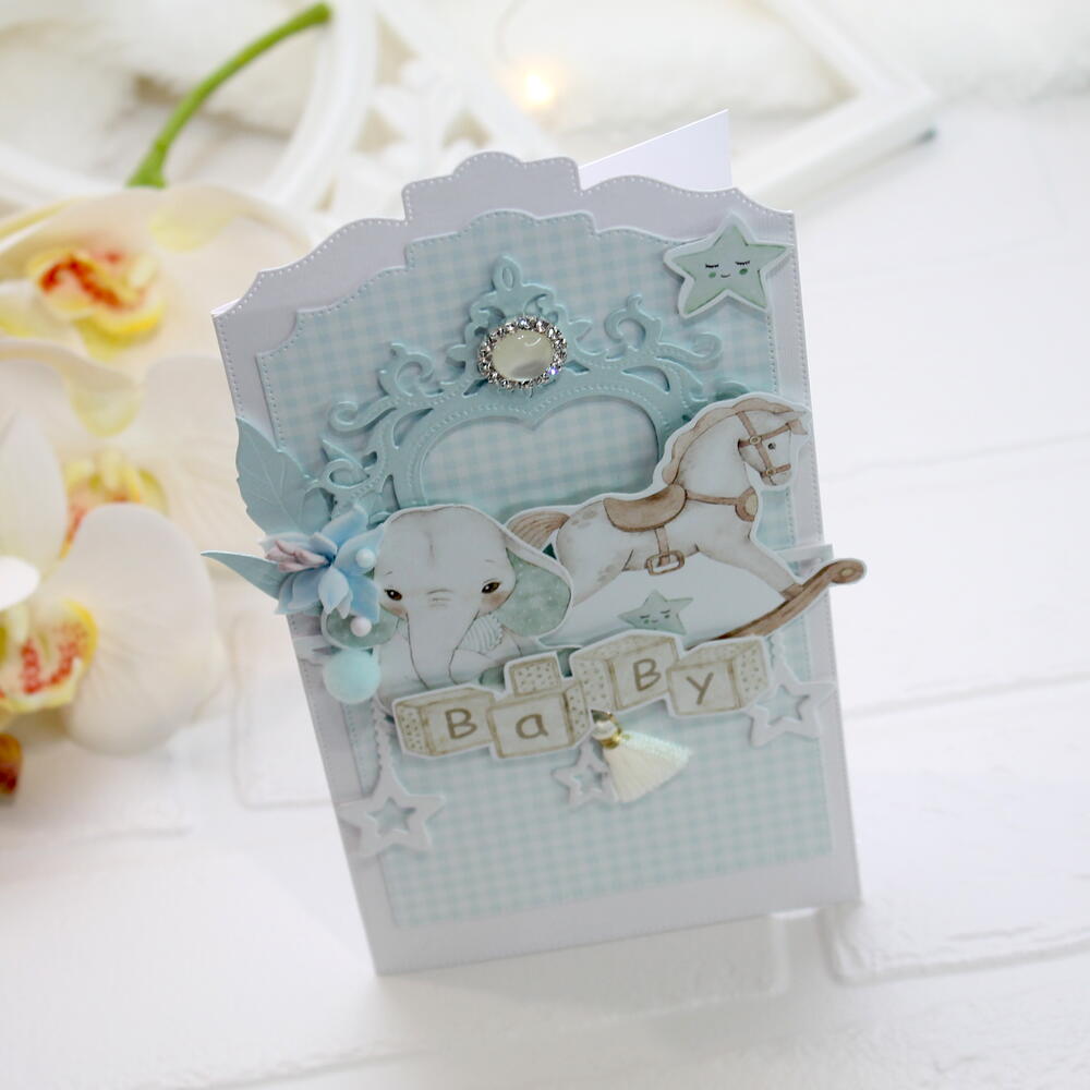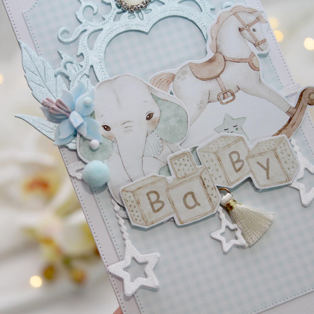 Первая открытка — как первая сказка... ✨ Рождение малыша или его самый первый день рождения — это моменты, которые хочется сохранить в памяти навсегда. Эта открытка создана именно для таких бесценных воспоминаний. Рассматривать её детали — одно удовольствие: 🐘 Добрый слонёнок и классическая лошадка-качалка — символы самого уютного и беззаботного детства. 🎲 Кубики, складывающиеся в заветное слово «Baby», подчеркивают важность момента. ⭐️ Крошечные звездочки и миниатюрная кисточка, которая так мило покачивается, добавляют работе игривости и легкости. 💎 Сияющий кристалл в ажурной оправе, как маленькое сокровище, венчает эту композицию. Нежные оттенки мяты и небесно-голубого цвета идеально подойдут для поздравления маленького принца. Это не просто открытка, это частичка души, которую вы подарите вместе со своими теплыми словами.