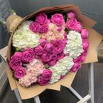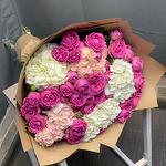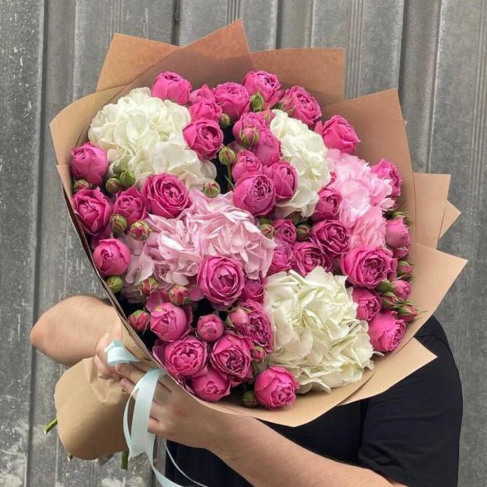 Лента атласная - 2 шт. Упаковка дизайнерская - 5 шт. Открыточка с вашими пожеланиями - 1 шт. Гортензия микс - 5 шт. Misty bubbles - 15 шт.