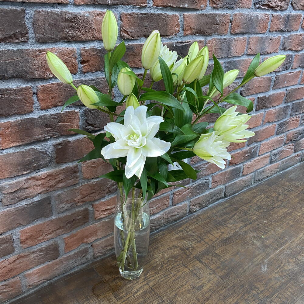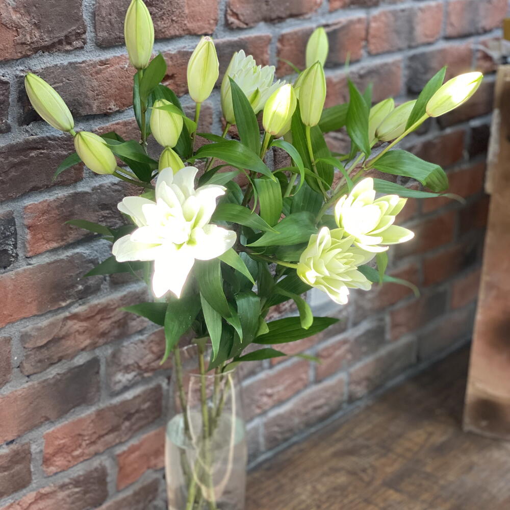 Белая пионавидная лилия , иногда с розовым оттенком.