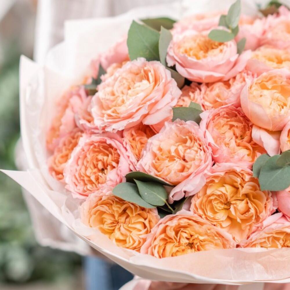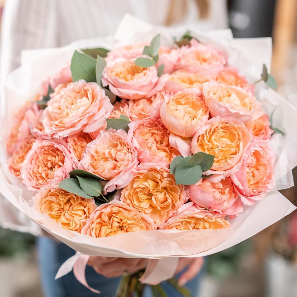 Эвкалипт - 7 шт. Роза пионовидная кустовая - 9 шт.