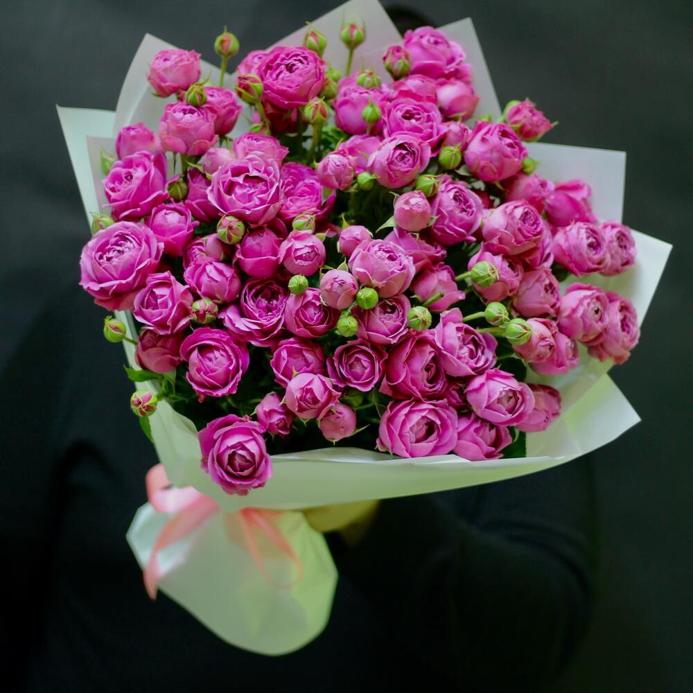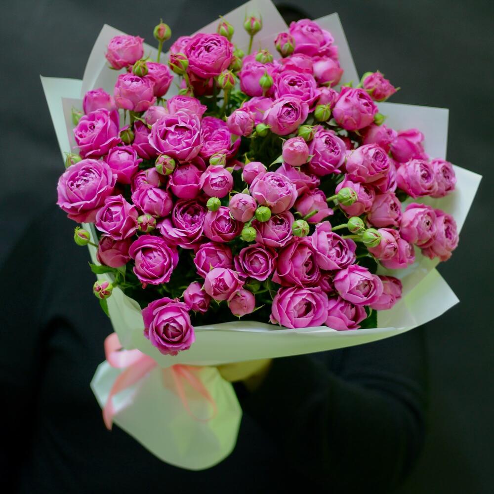 Упаковка - 3 шт. Лента атласная - 1 шт. пионовидные кустовые розы Misty Bubbles - 15 шт.
