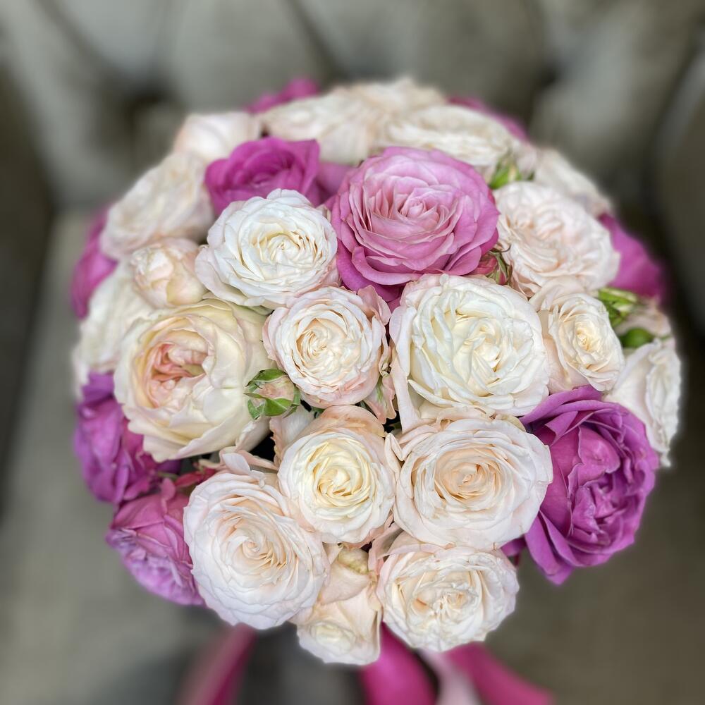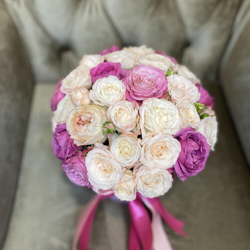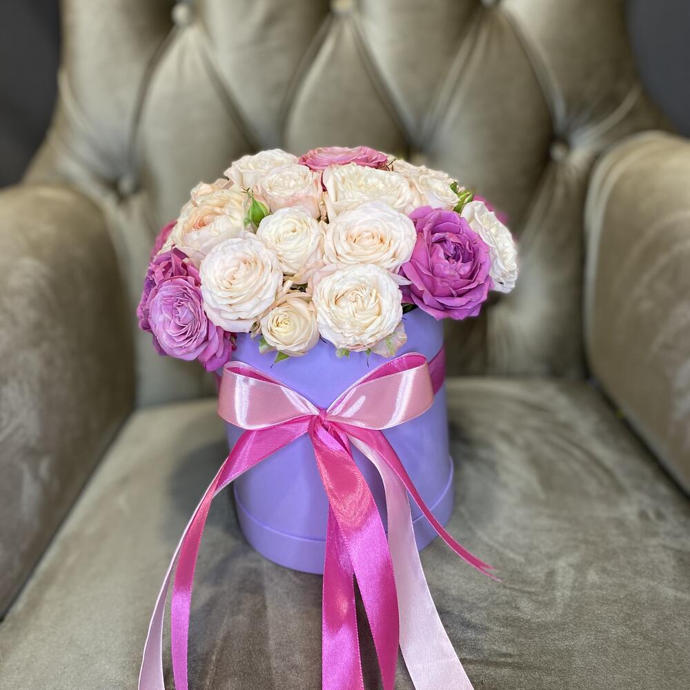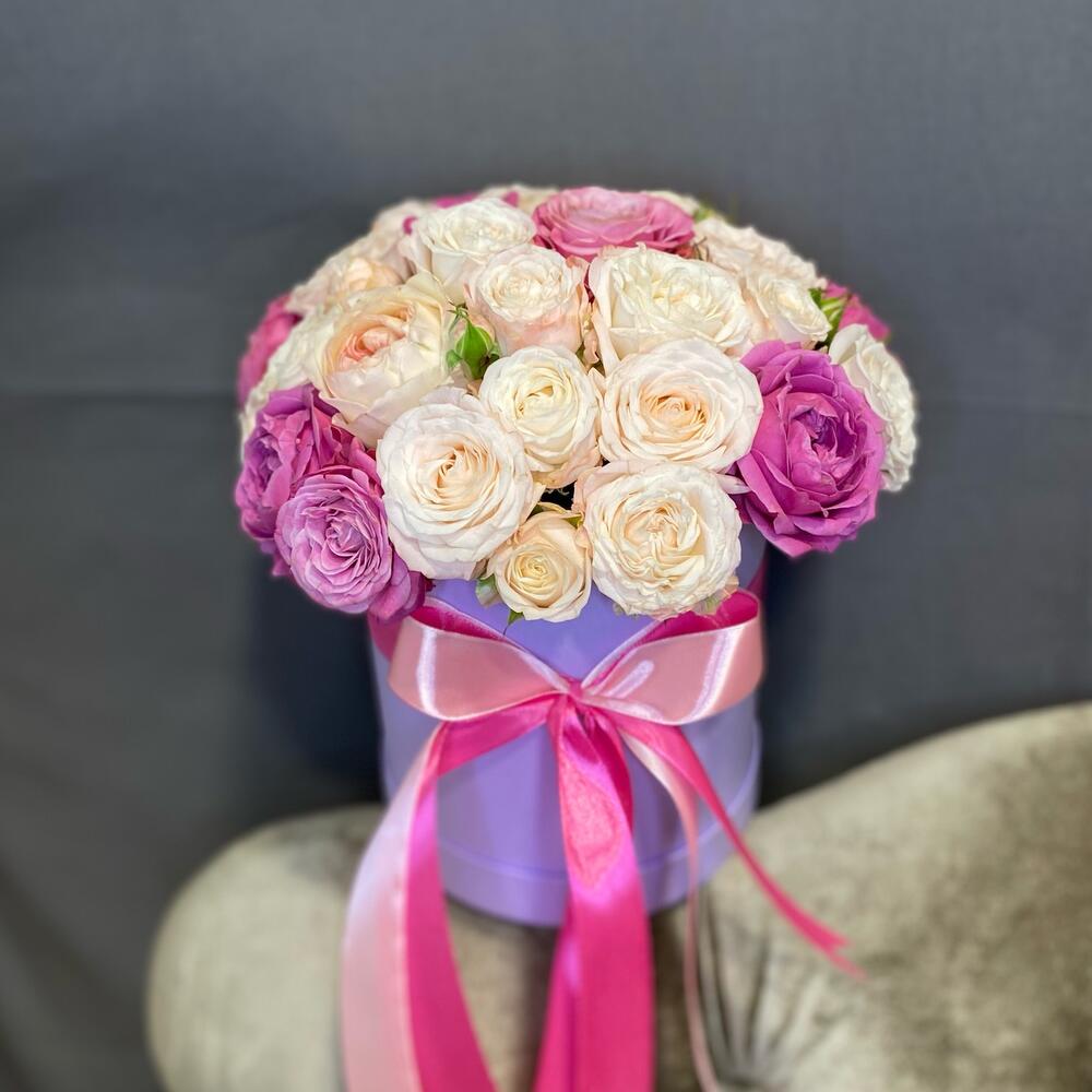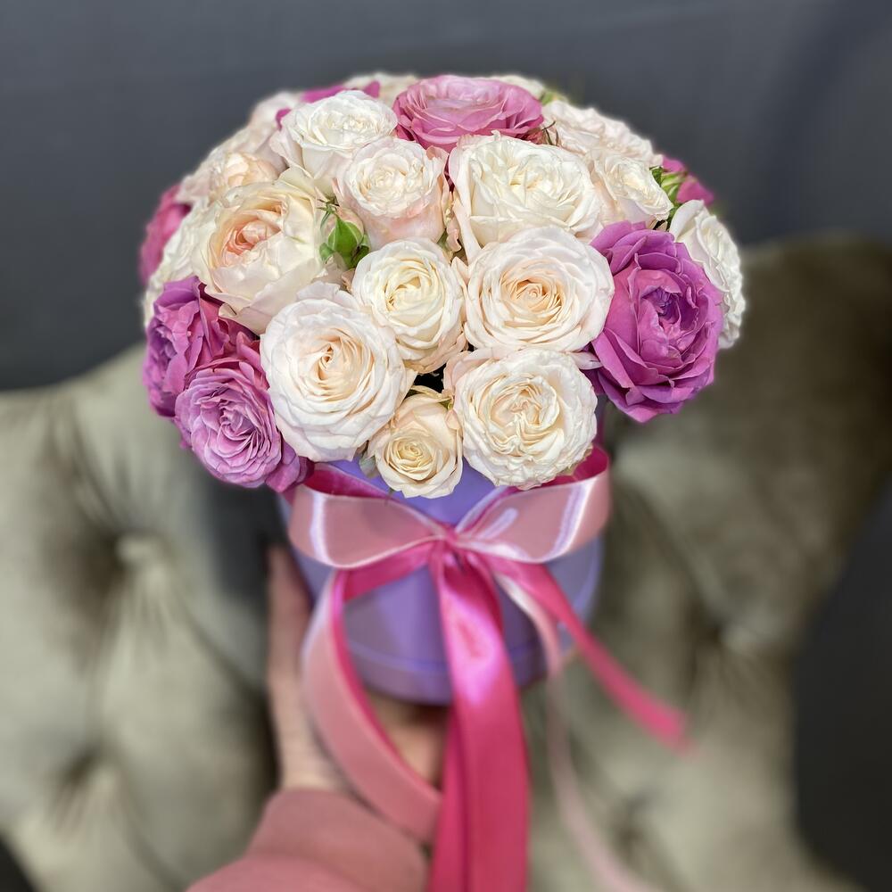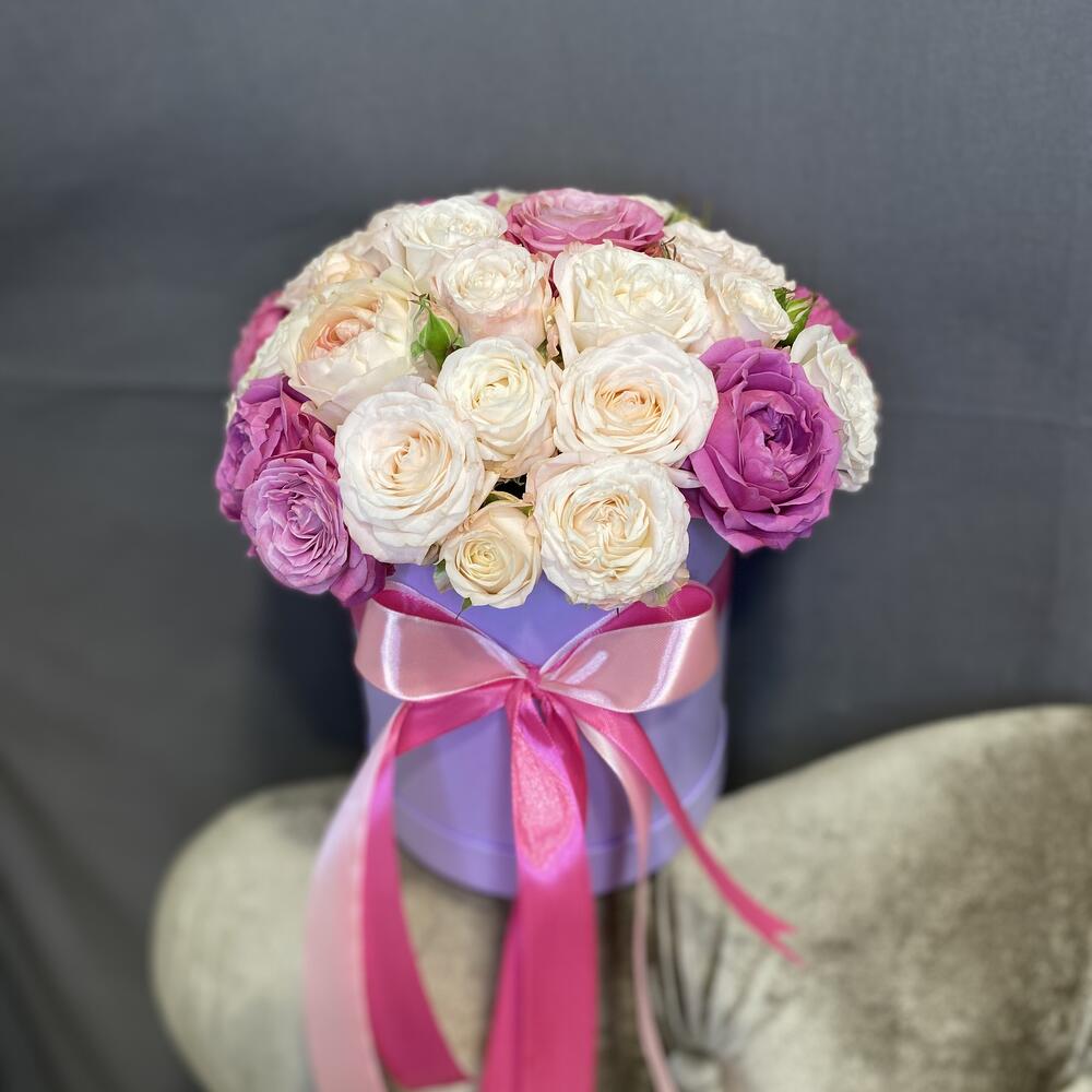 Коробка шляпная - 1 шт. розы пионовидные кустовые - 7 шт.