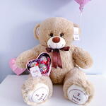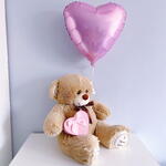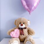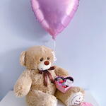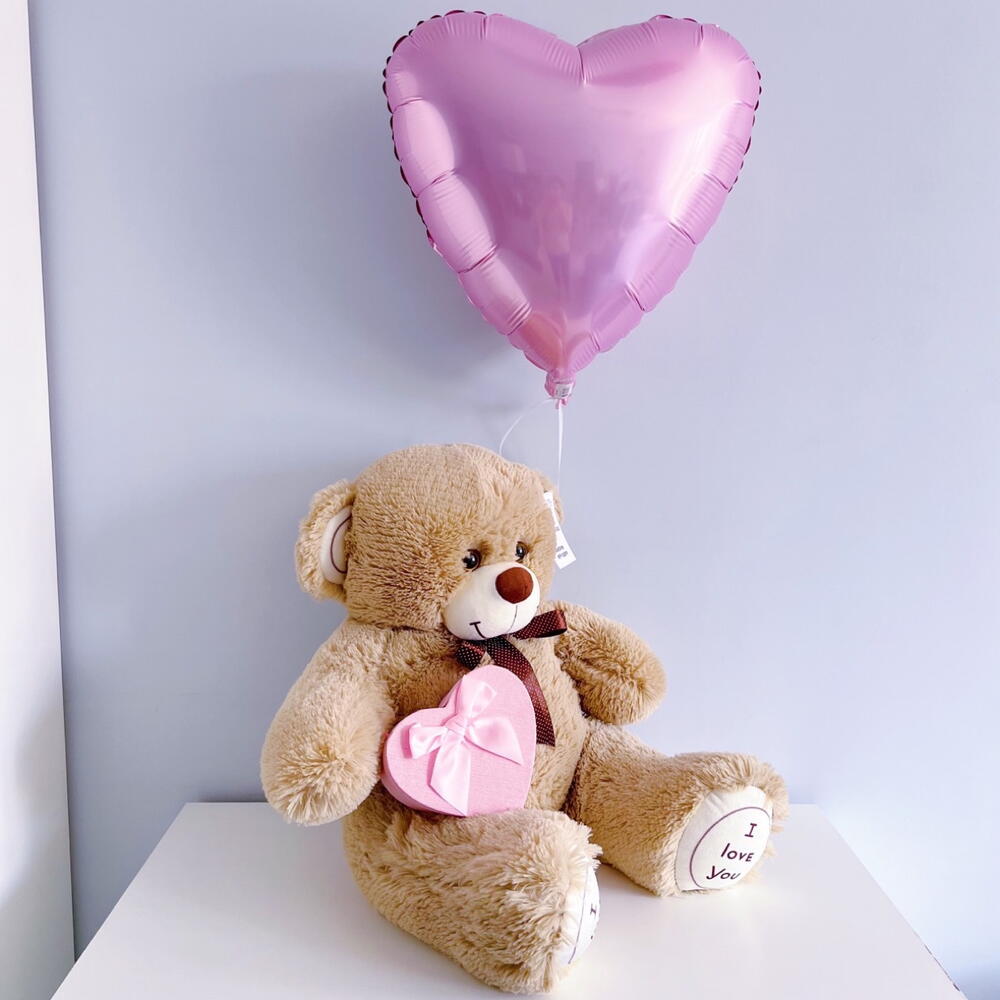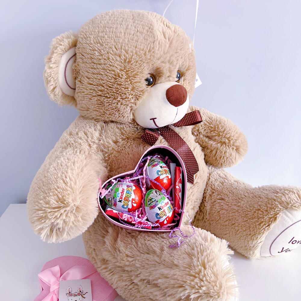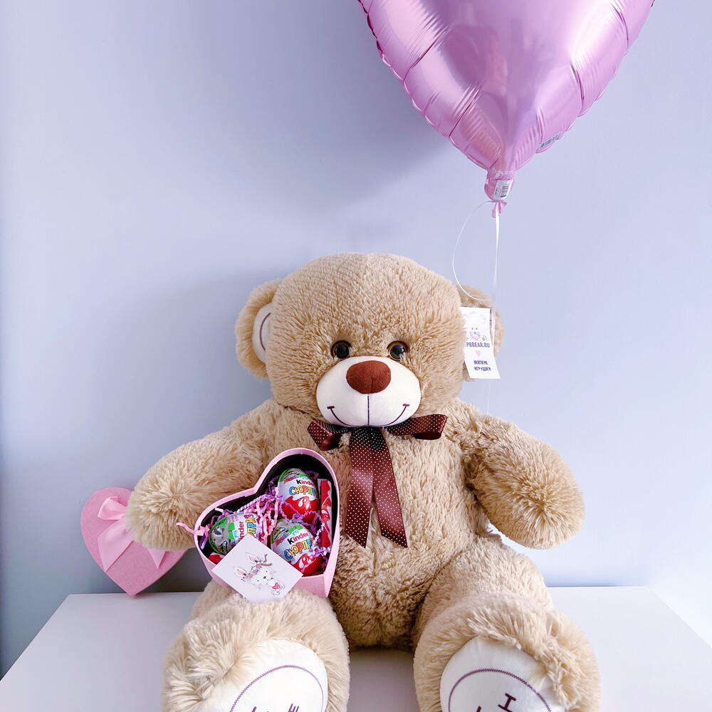 Плюшевый мишка 90 см кремовый, Шар сердце розовый, Киндербокс малый. Подарочный набор