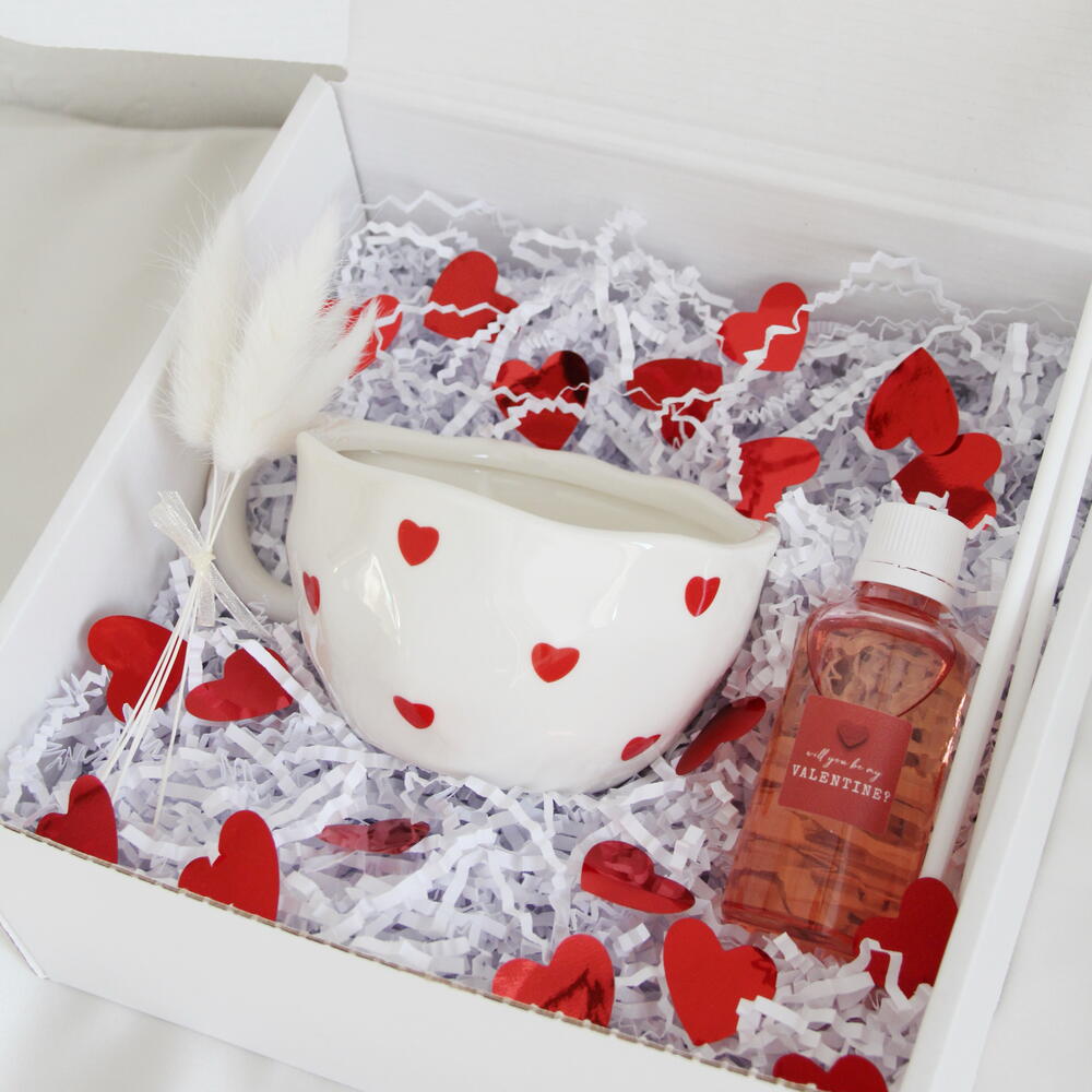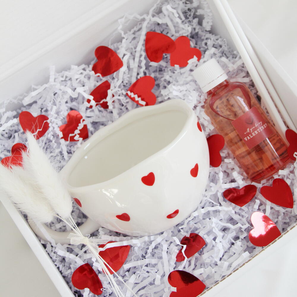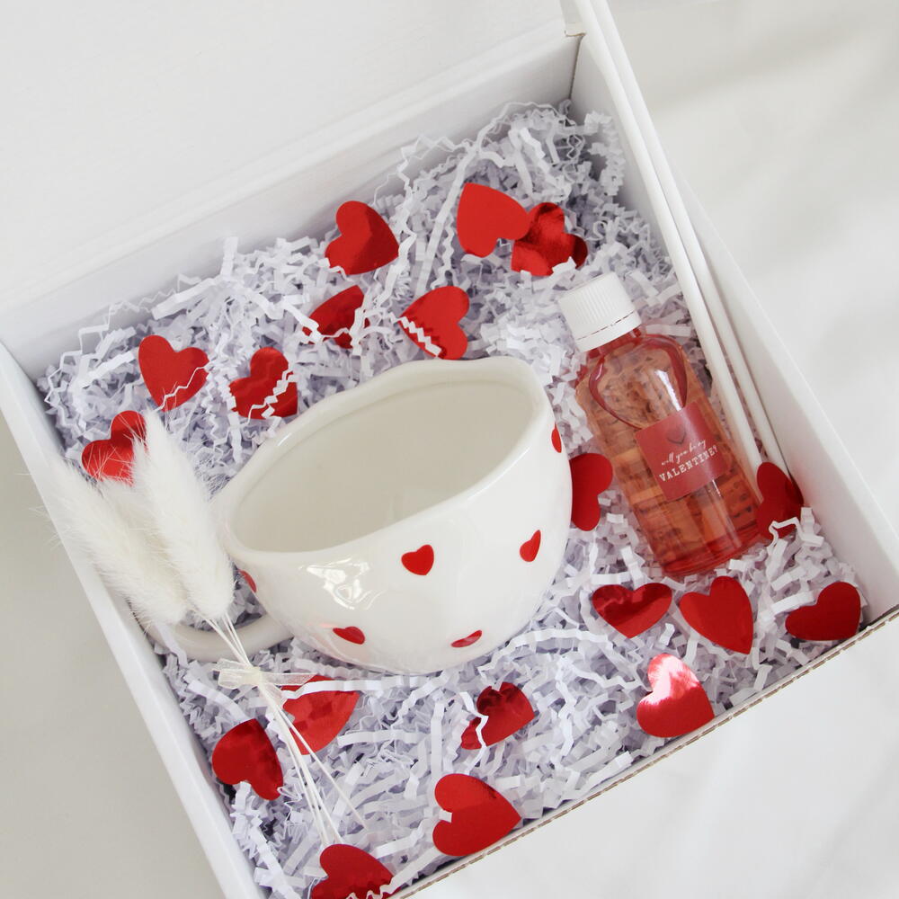 Подарочный набор ручной работы «Люби», внутри ароматический диффузор аромат «слива, ваниль, вишня» в розовом стекле 50мл, керамическая кружка «сердце» 200мл, подойдет для себя, а так же в подарок родным и близким.