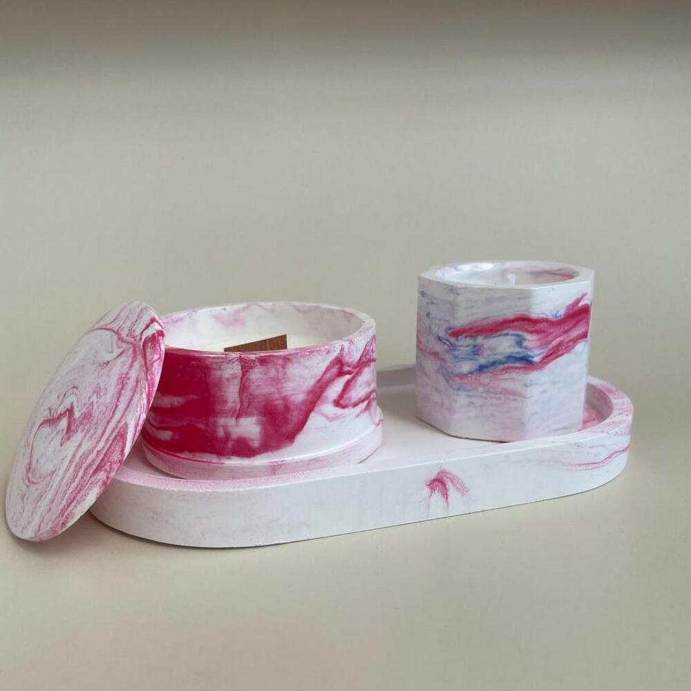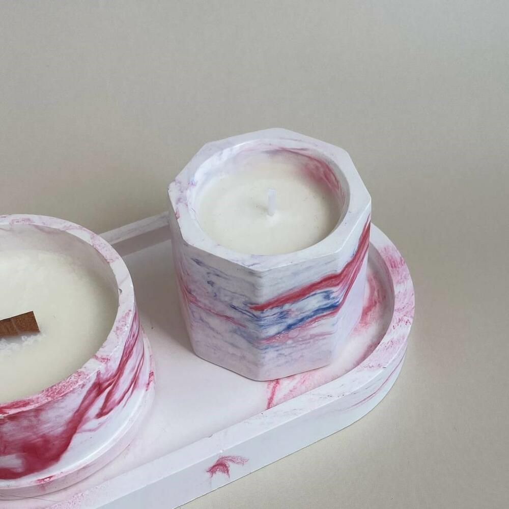 подставка для свечей и украшений - 1 шт. свеча с ароматом «сладости и кашемир» - 1 шт. свеча с ароматом «ванильная амбра» - 1 шт.