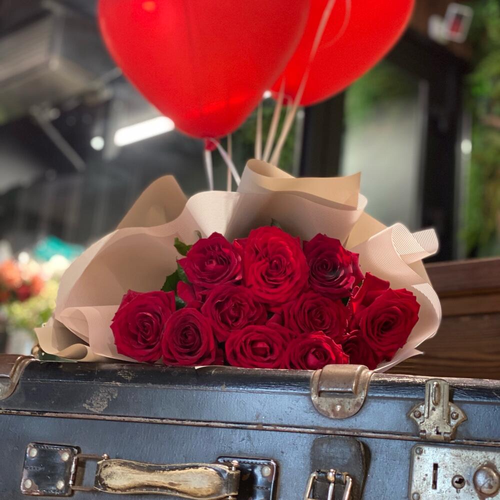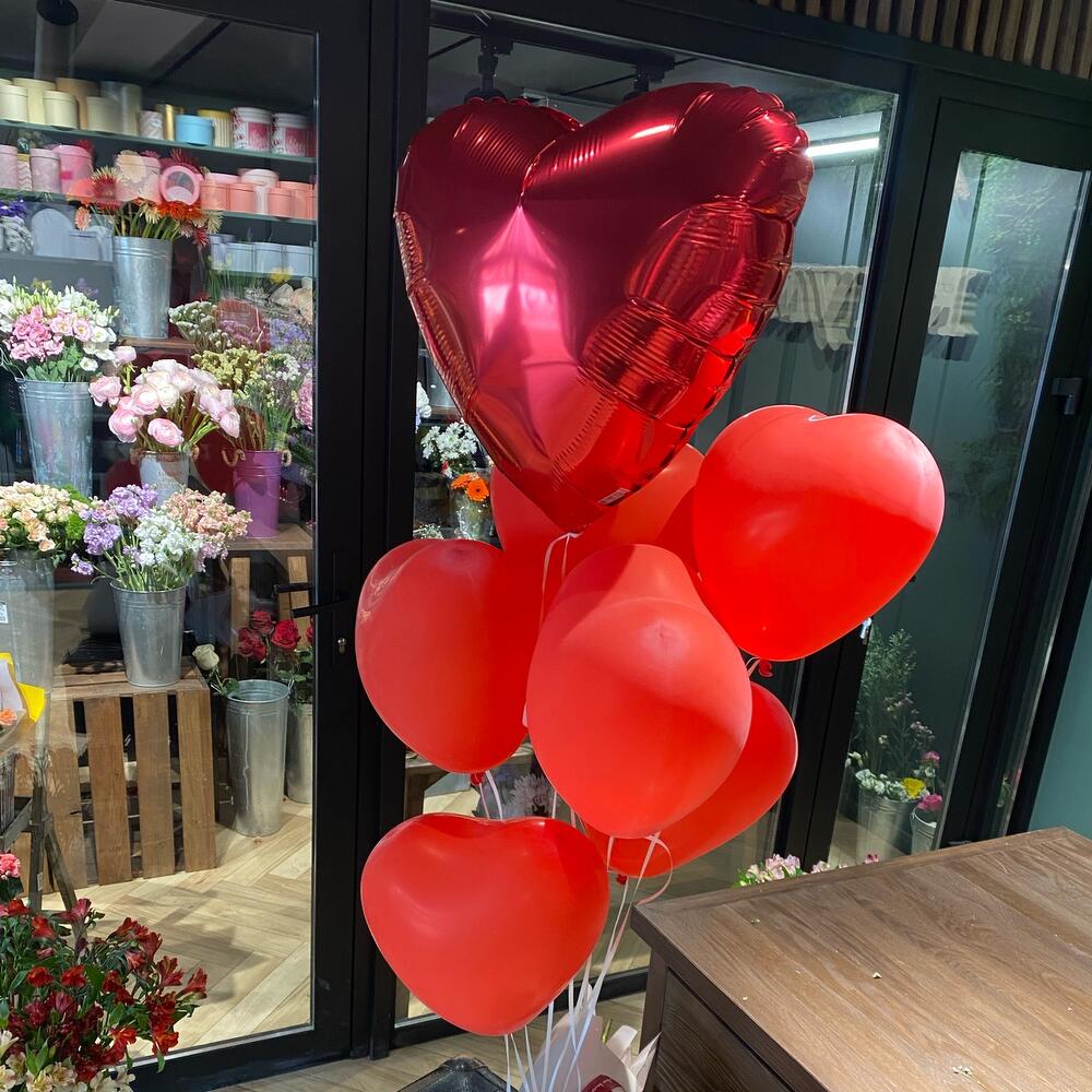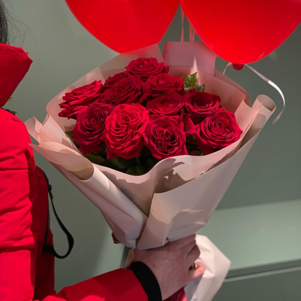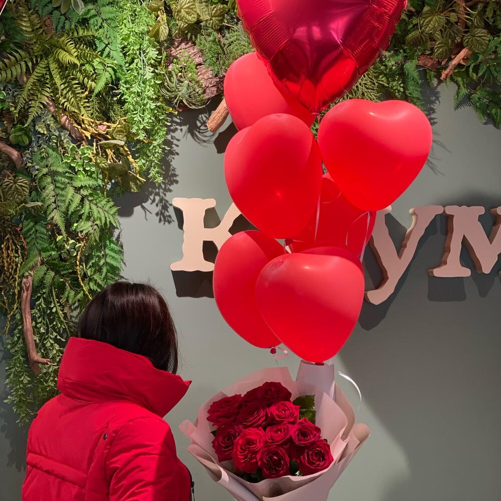 Роза - 11 шт. Упаковка дизайнерская - 1 шт. Шар сердце - 8 шт. шар сердце фольга - 1 шт.