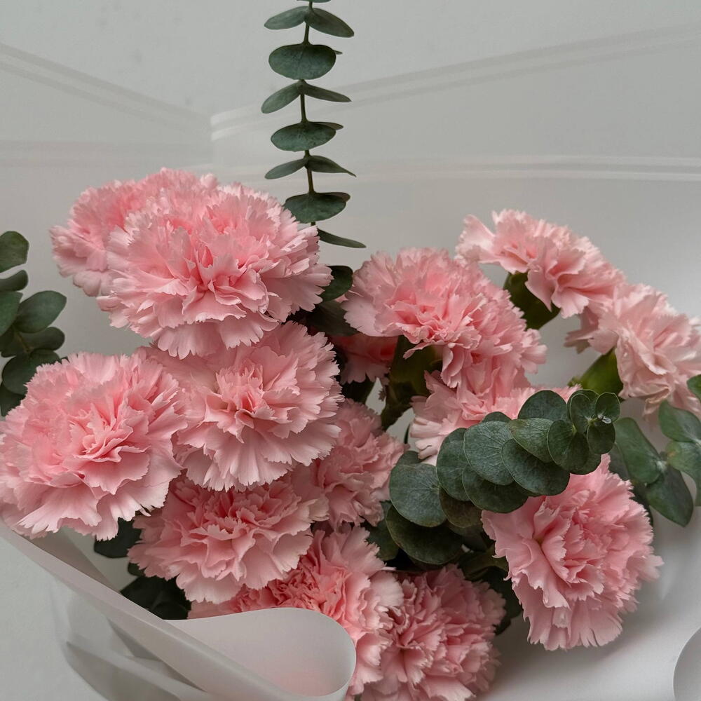 Этот нежно-розовый букет станет отличным и запоминающимся подарком ко Дню Матери 🥰 Стойкие диантусы в сочетании с ароматным эвкалиптом будут радовать получательницу долгое время, если следовать инструкции по уходу за цветами. В подарок к букету мы положим подкормку для большей стойкости цветов 🎁 По желанию с радостью дополним букет открыткой с Вашими теплыми словами )