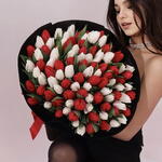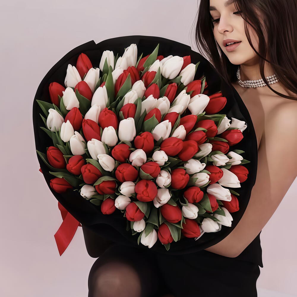 Хотите по-настоящему порадовать любимых и подарить тёплые эмоции надолго? Цветы от FlowerBloomery — всегда беспроигрышный выбор. Команда FlowerBloomery уверены, что цветам не нужен повод — они уместны всегда, будь то важное событие или искреннее «просто так». ❤️ Букет состоит из 101 тюльпана, что делает его по-настоящему пышным и впечатляющим. Сочетание красного и белого цветов создает гармоничную и стильную композицию, которая будет радовать глаз и вызывать улыбку на лице получателя.