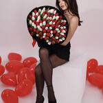 красные и белые тюльпаны - 101 шт.