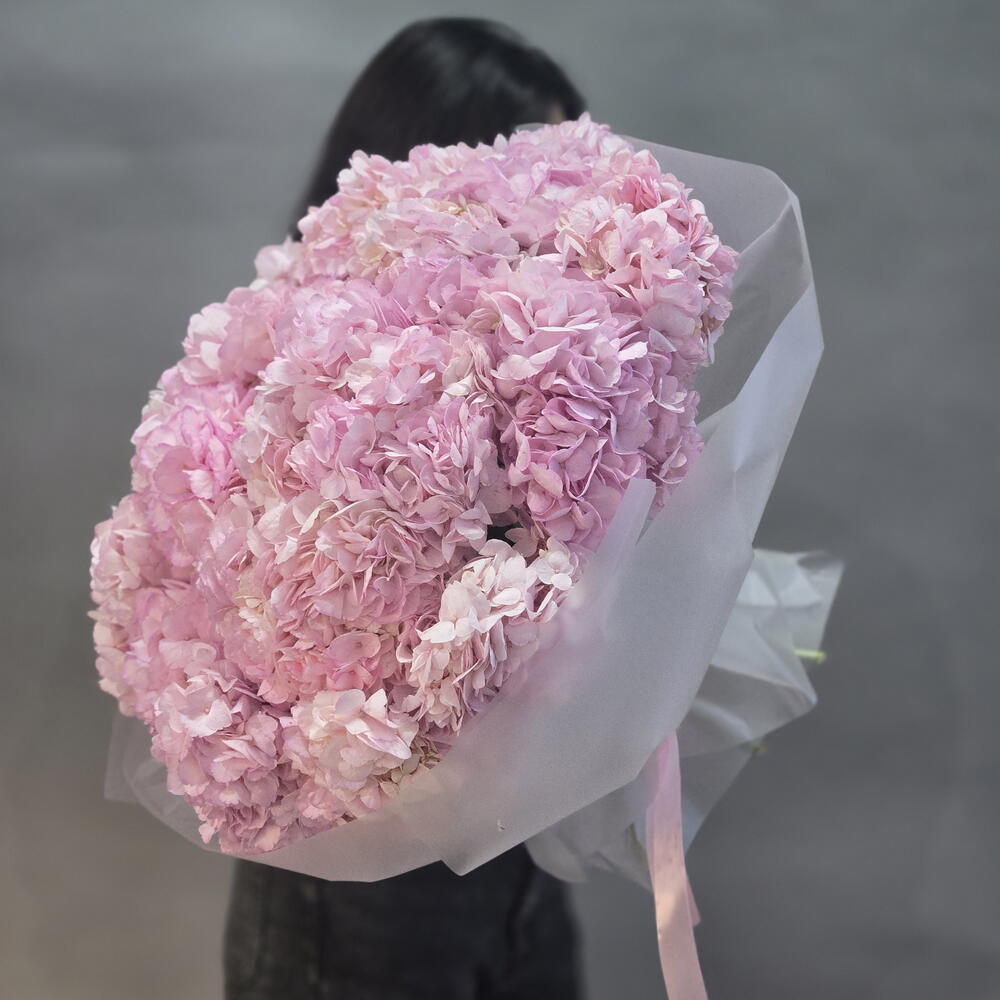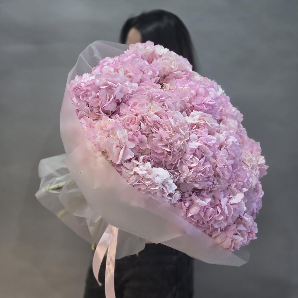 Пышный букет из 21 гортензий розового цвета, размер XL, от "Di_Flowerslab"