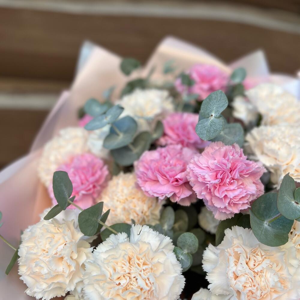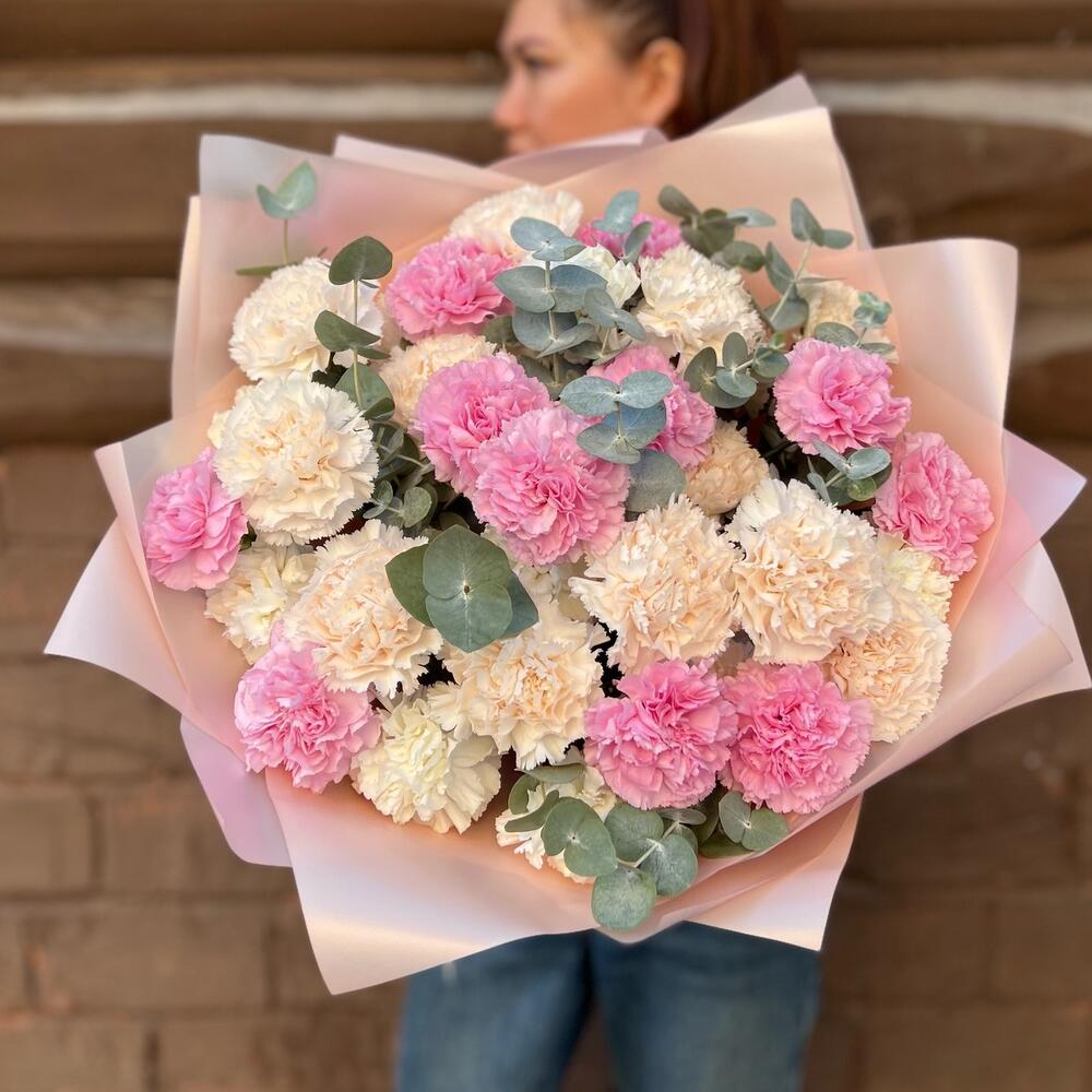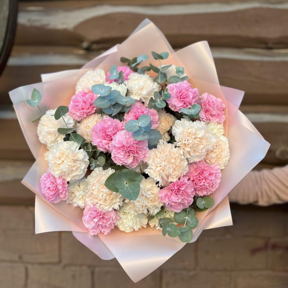 Эвкалипт - 8 шт. Дизайнерская упаковка - 1 шт. диантусы - 35 шт.