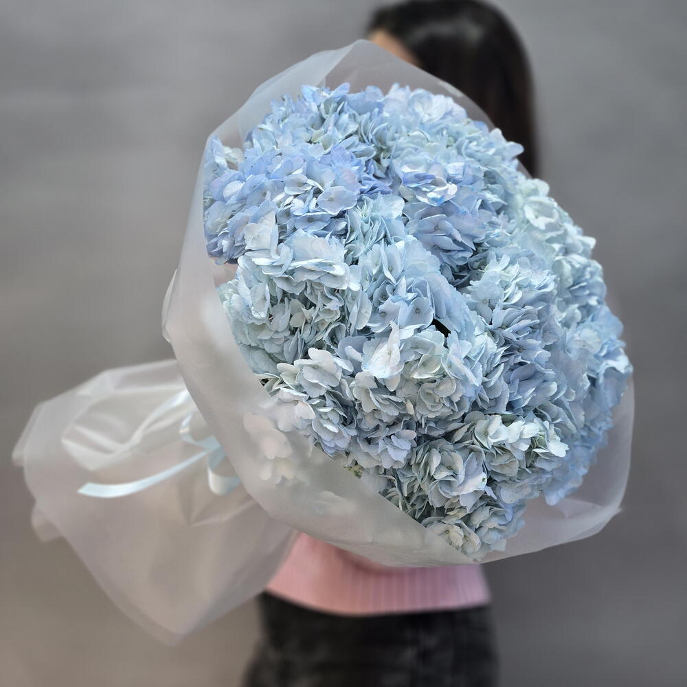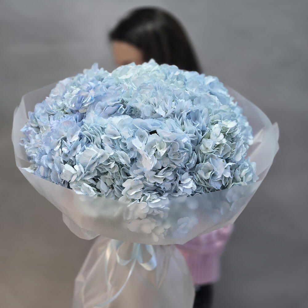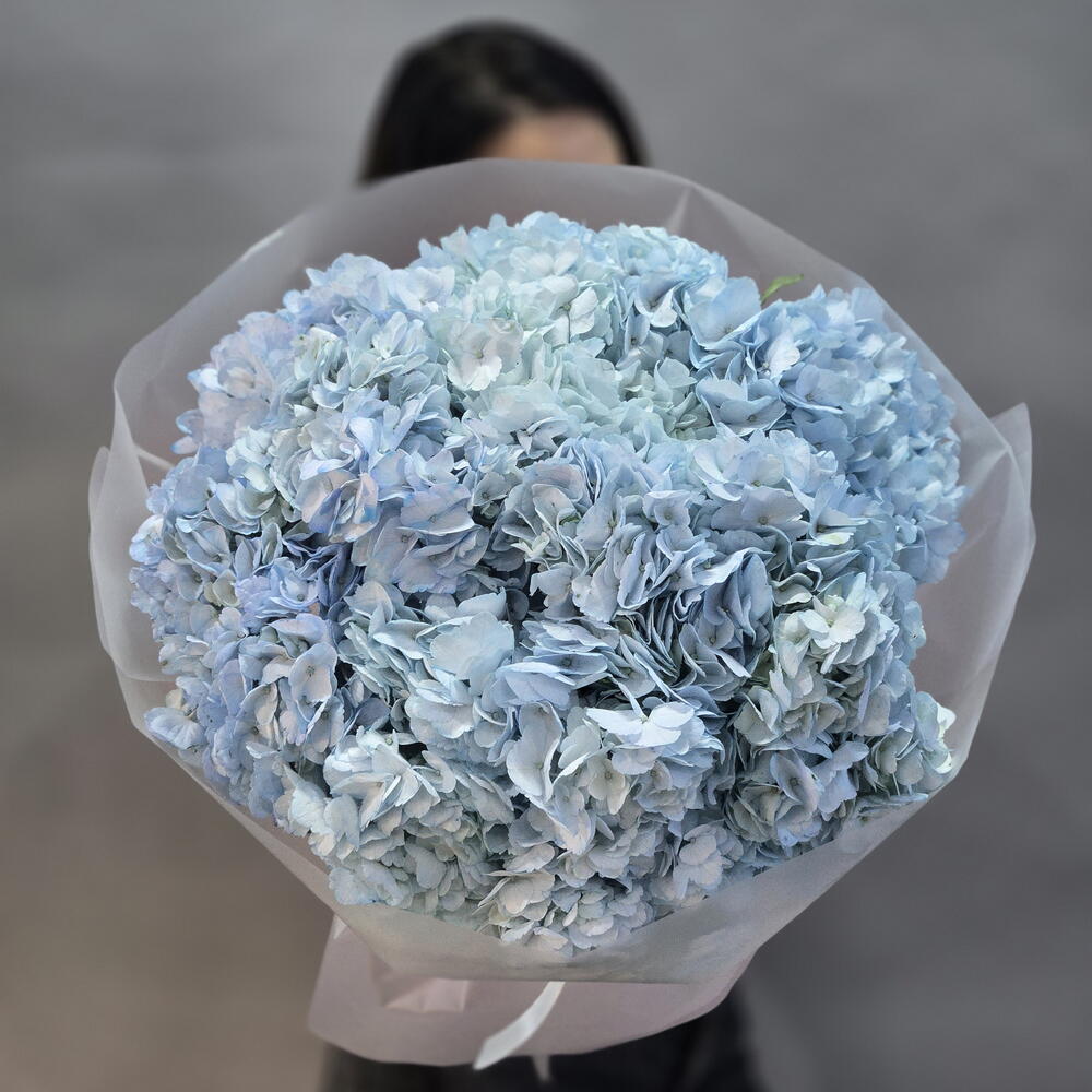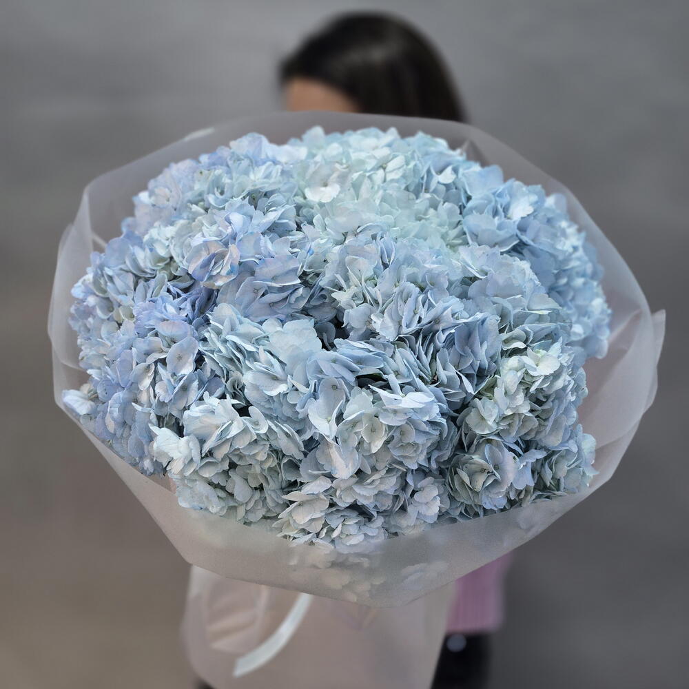 Пышный букет из 9 гортензий голубого цвета, размер M, от "Di_Flowerslab"