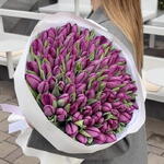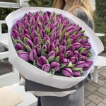 Объёмный монобукет из 101 тюльпана насыщенного фиолетового оттенка. Благодаря большому количеству цветов, композиция выглядит как пышное, бархатистое облако. Выразительный и современный подарок, наполненный цветом и жизнью.
