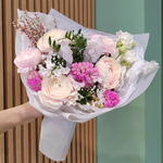 Лизиантус - 1 шт. Фисташка - 1 шт. Аллиум - 3 шт. Упаковка дизайнерская - 1 шт. Гениста Розовая - 1 шт. Гиацинты - 3 шт. Ранункулус - 5 шт.
