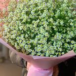 Лента атласная - 2 шт. Ромашка кустовая - 49 шт. Упаковка дизайнерская - 8 шт. Открыточка с вашими пожеланиями - 1 шт.