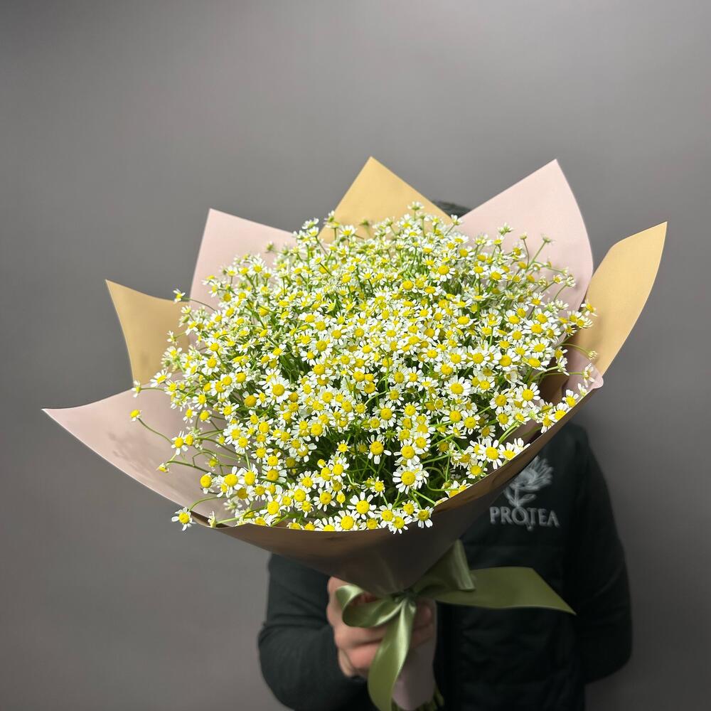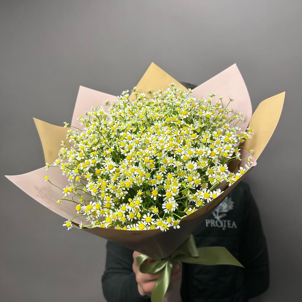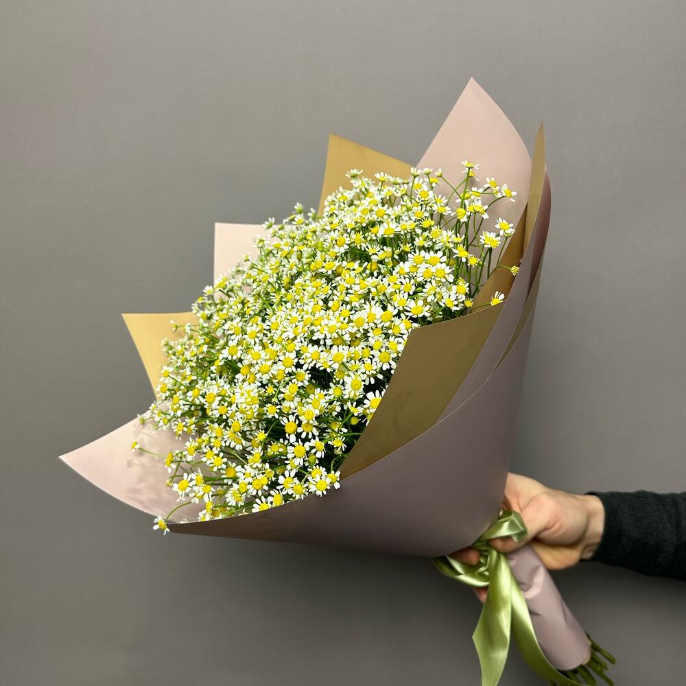 Танацетум - 19 шт. Лента атласная - 4 шт. Корейская упаковка - 3 шт.