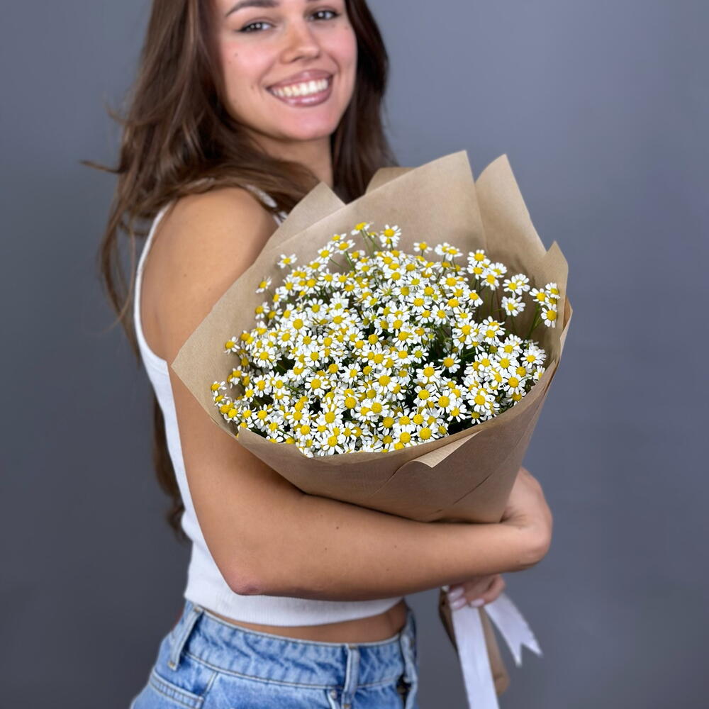 Воздушный и легкий букет из кустовых ромашек в крафте смотрится очень нежно. Кустовые ромашки долго простоят в вазе и будут радовать свою получательницу! Добавляйте товар в избранное, чтобы не потерять его!
