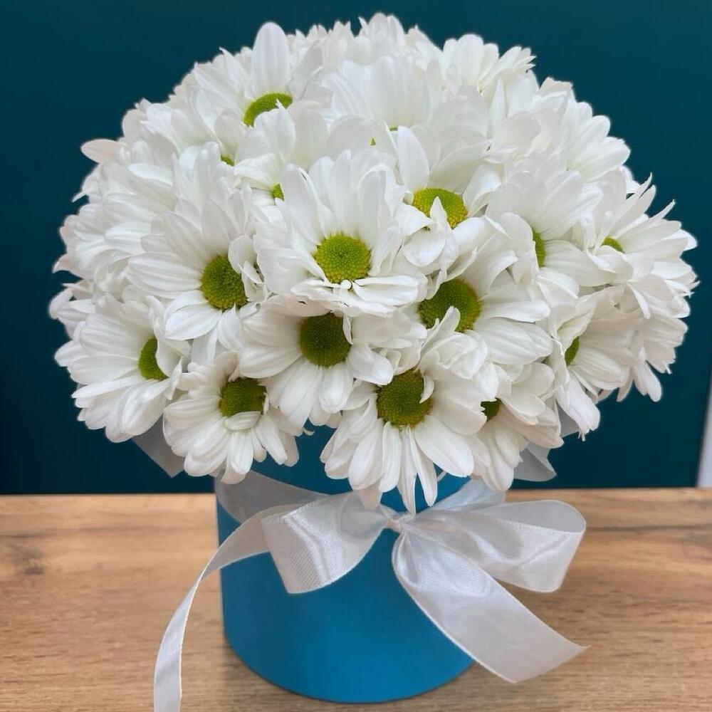 Милые ромашки в круглой голубой коробке 💙 Представляем вашему вниманию великолепный букет, созданный профессиональными флористами. Состав композиции🌿 Наши флористы создают каждый букет индивидуально, учитывая сезонность, доступность цветов и ваши пожелания. Мы можем дополнить композицию приятными сюрпризами: • Конфетами Rafaello • Мягкими игрушками • Открытками • Воздушными шарами Важная информация 🪷 Поскольку цветы — это живой материал, возможны незначительные изменения в сортах или оттенках при сохранении общей концепции и настроения композиции. Обратная связь ❤️ Благодарим вас за выбор нашего магазина! Ваше мнение очень важно для нас. Поделитесь впечатлениями о заказе — каждый отзыв помогает нам совершенствоваться и становиться лучше. Спасибо за доверие и поддержку!