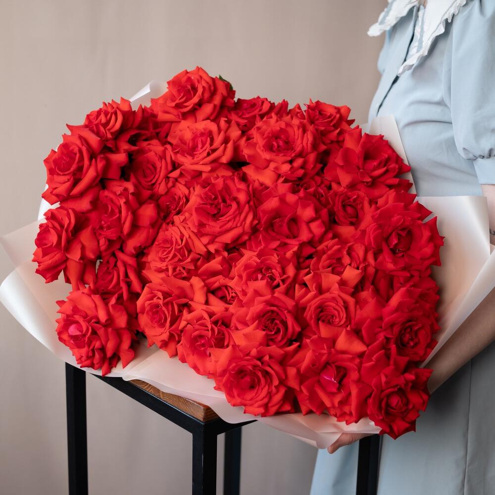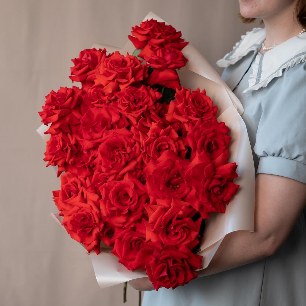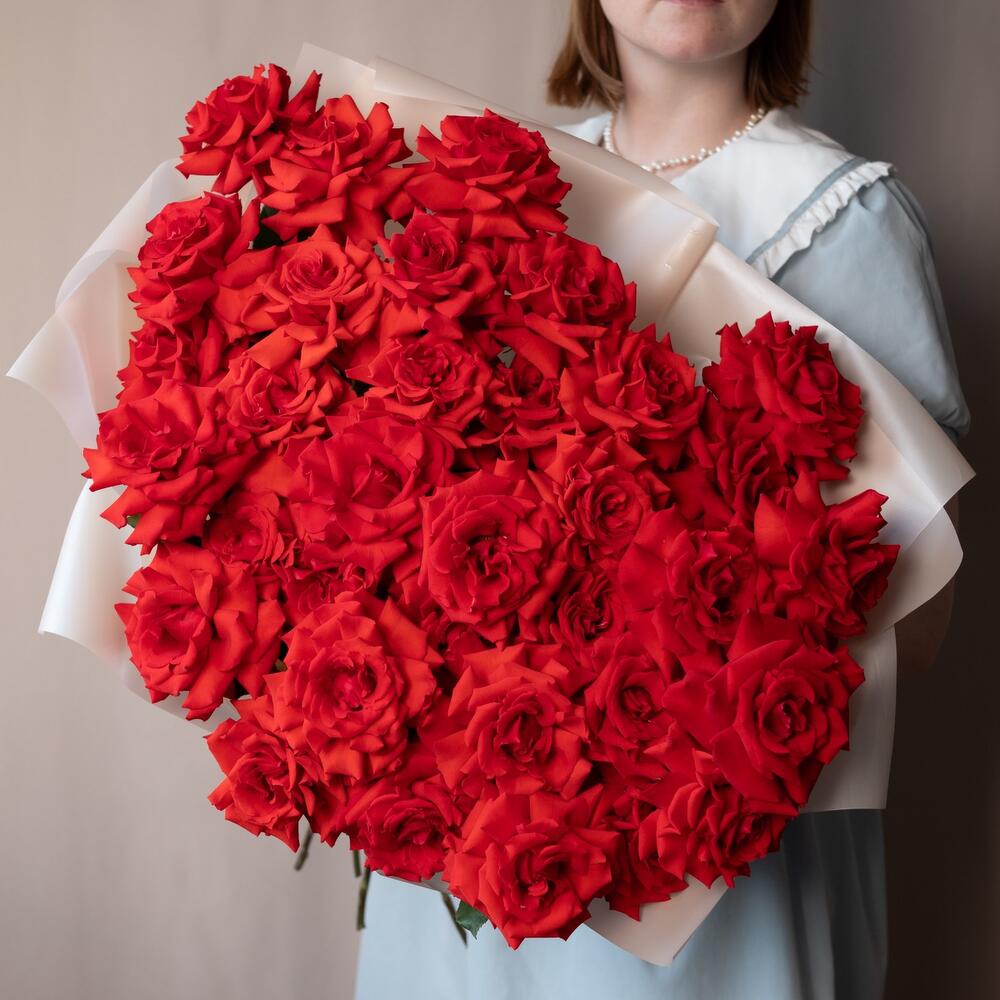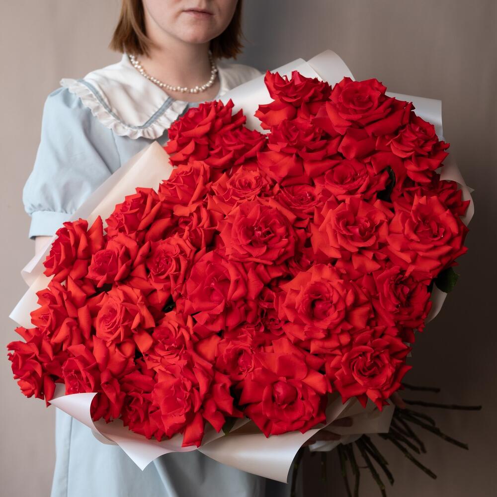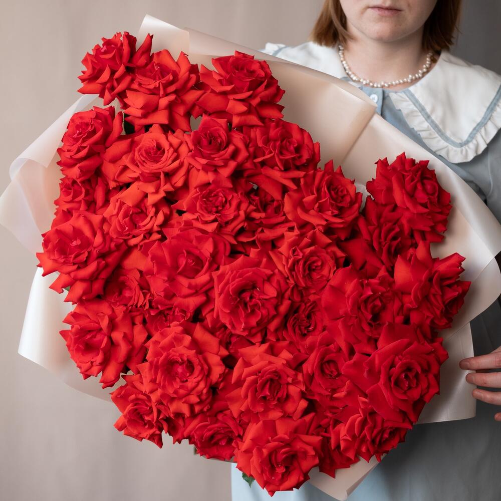 Роскошный большой букет красных Французских роз 35 шт "Яркие чувства"