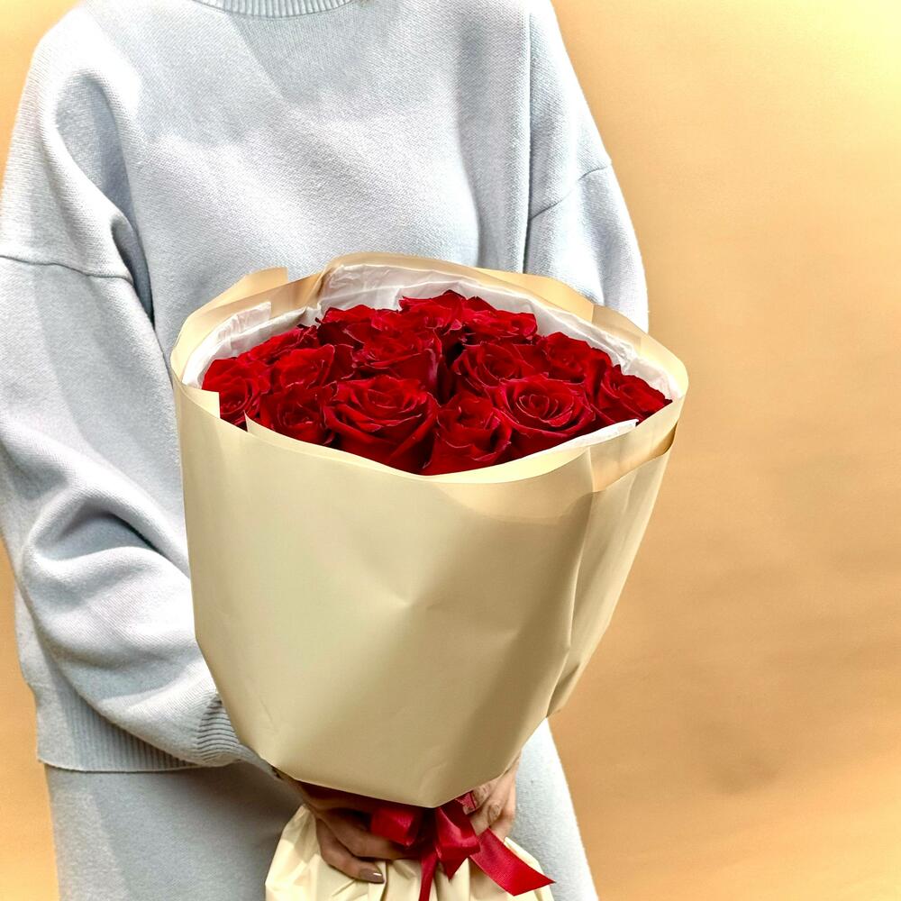 Этот великолепный букет из 15 красных роз сорта Explorer — настоящее воплощение страсти и элегантности. Каждая роза в этом букете словно драгоценный камень, сверкающий на свету. Их насыщенный красный цвет символизирует глубокую любовь и уважение, а форма бутонов — идеальная гармония природы и искусства. Розы сорта Explorer известны своей стойкостью и красотой, что делает этот букет не только красивым, но и долговечным. Упаковка из светлой бумаги и красная лента добавляют изысканности и завершённости композиции. Такой букет станет прекрасным подарком для любого случая, будь то день рождения, юбилей или просто знак внимания.