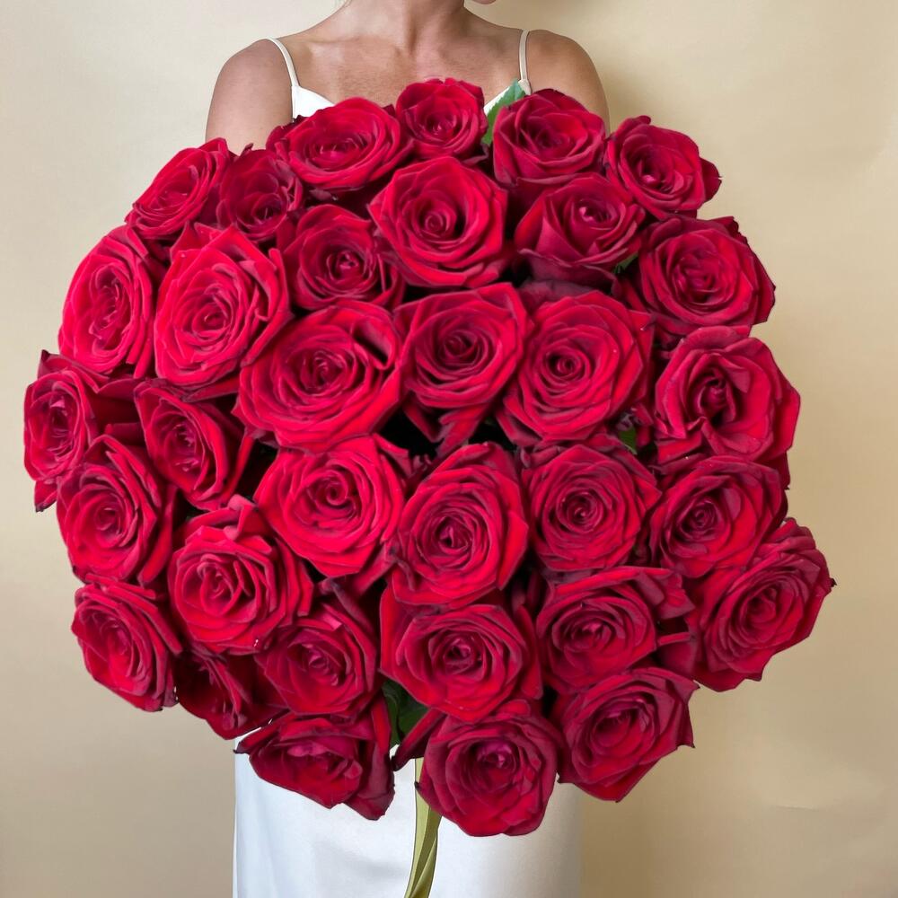 Лента атласная - 1 шт. Роза red naomi - 35 шт.