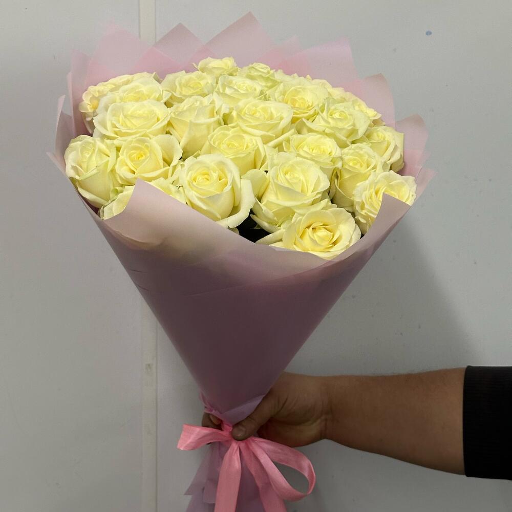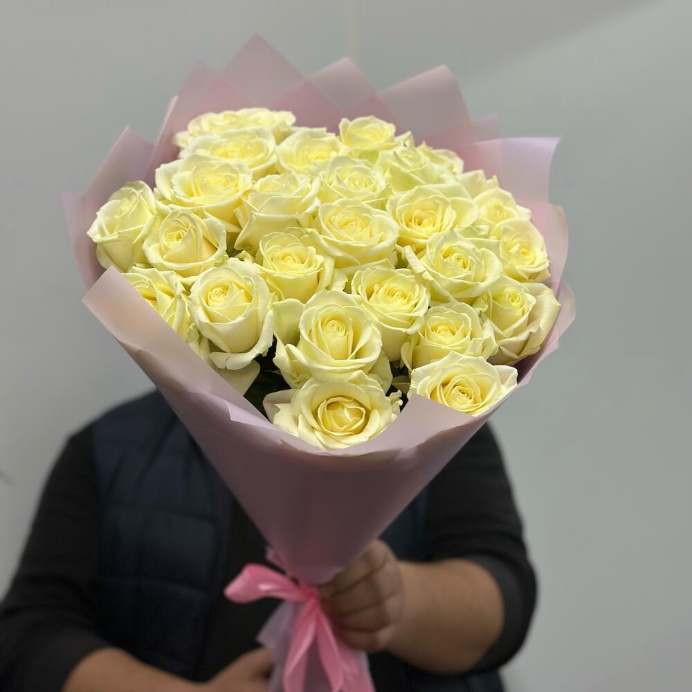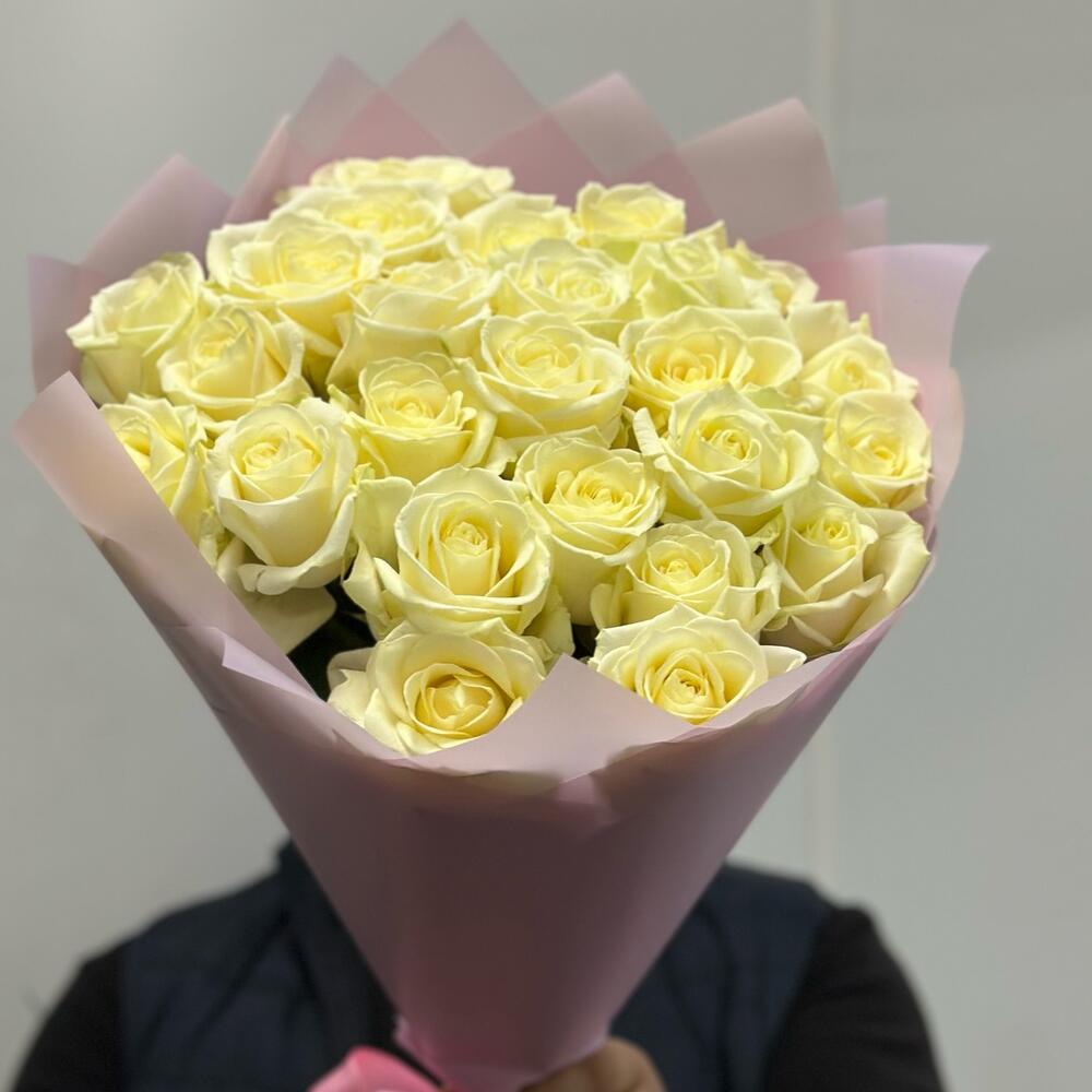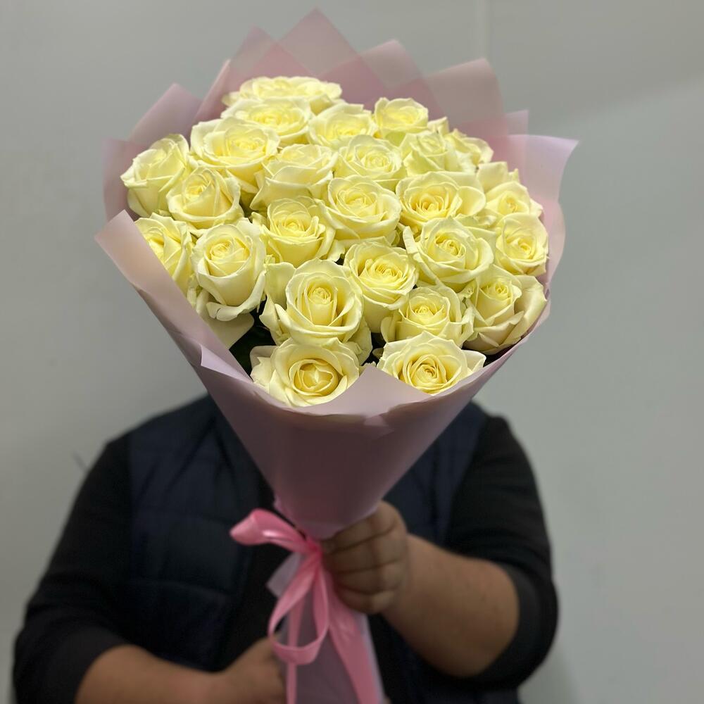 Роза Аваланж - 25 шт. Лента атласная - 1 шт. Упаковка дизайнерская - 1 шт. Открыточка с вашими пожеланиями - 1 шт. настроение на весь день - 1000 шт.