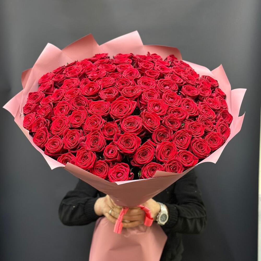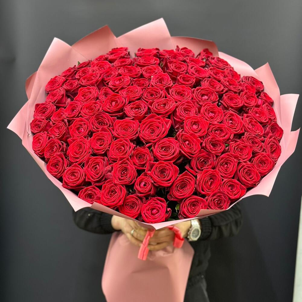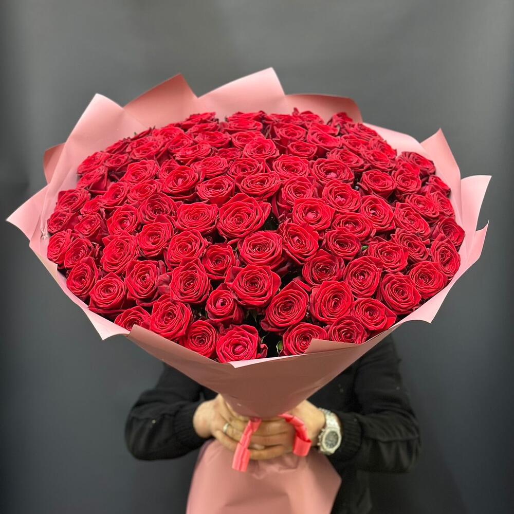 Упаковка По желанию клиента - 5 шт. Дизайнерская упаковка - 5 шт. атласный бант - 1 шт. роза бордовая голландия - 71 шт.