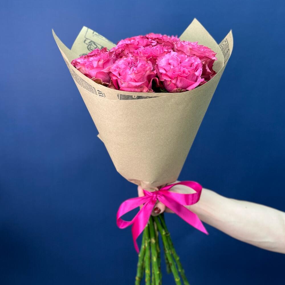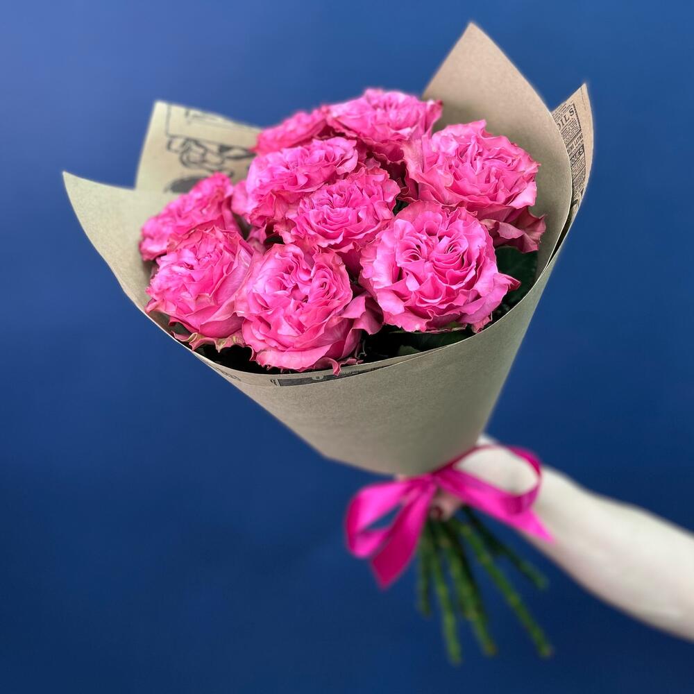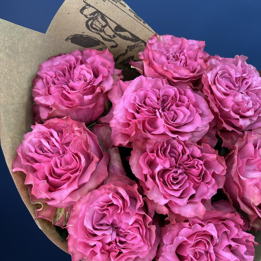 Лента - 1 шт. Упаковка крафт - 1 шт. роза кантри блю(пионовидная) - 9 шт.