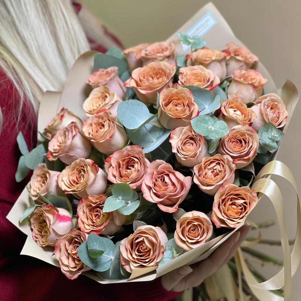 Роза капучино 29шт. с эвкалиптом