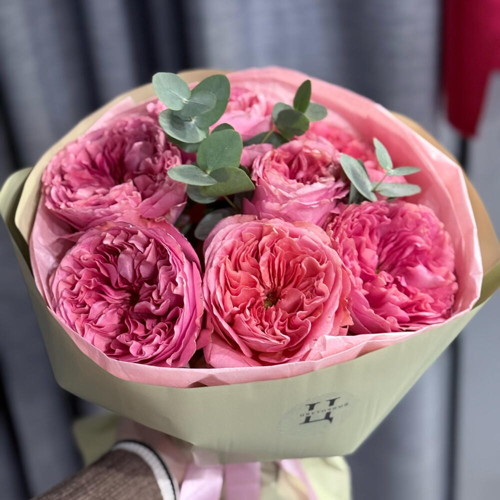 Эвкалипт - 2 шт. Упаковка дизайнерская - 1 шт. роза мандарин экспрешен - 7 шт.