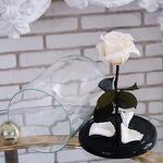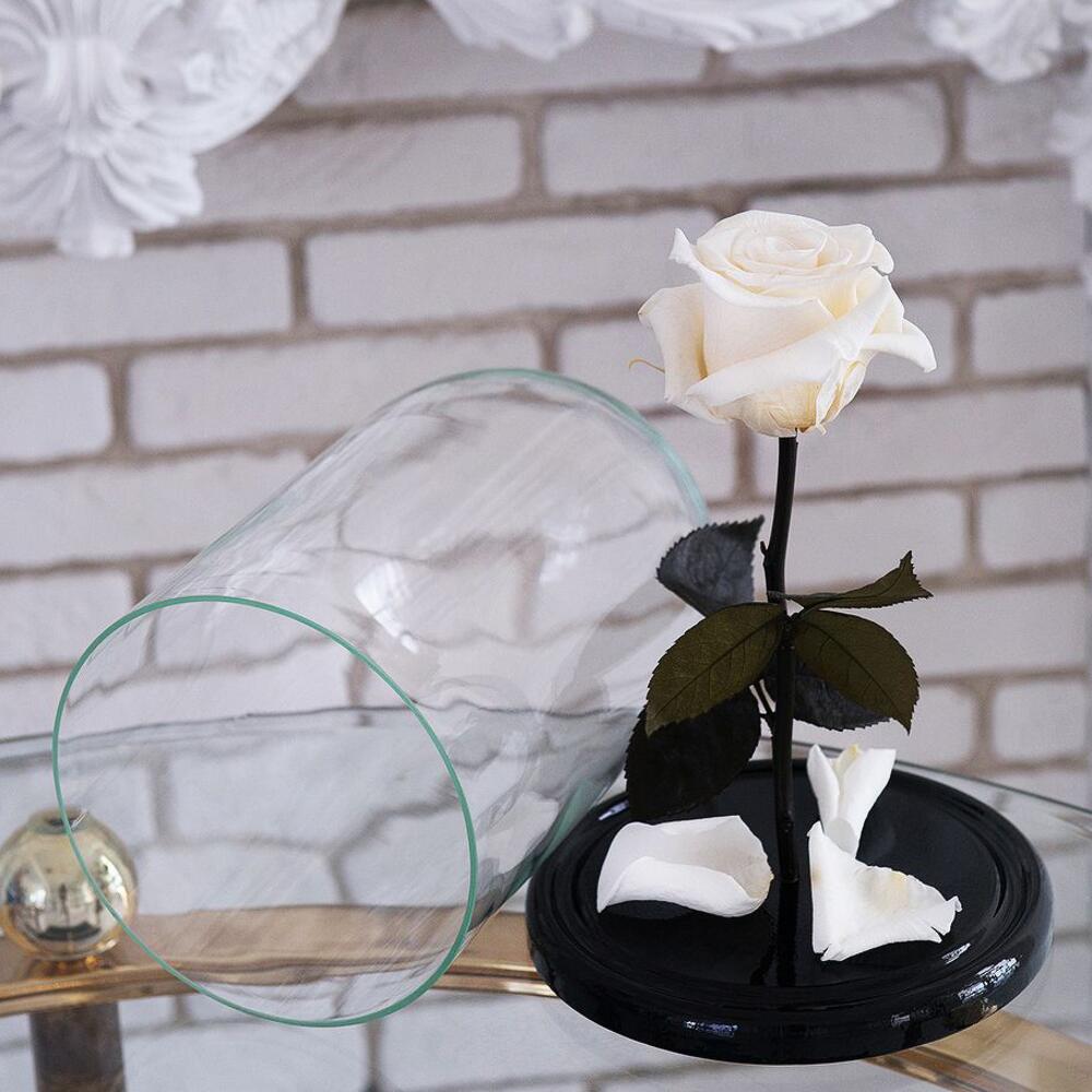 Стабилизированная роза - 1 шт. Деревянная подставка - 1 шт. Стеклянная колба - 1 шт.