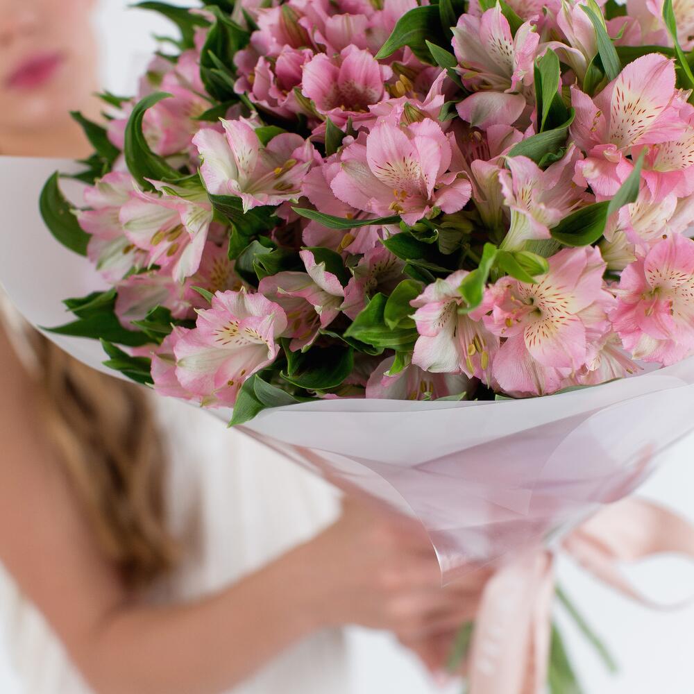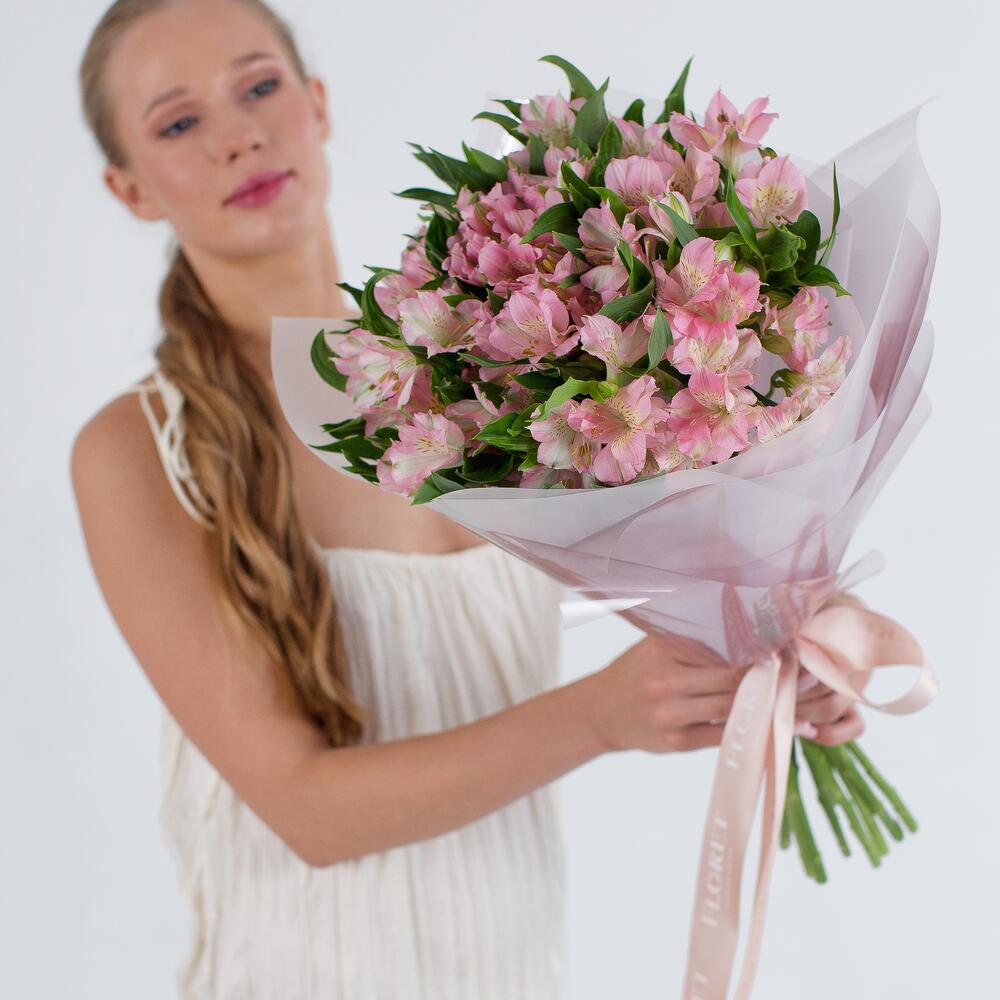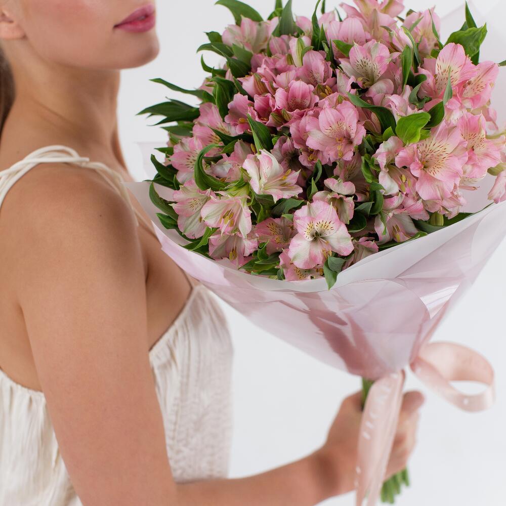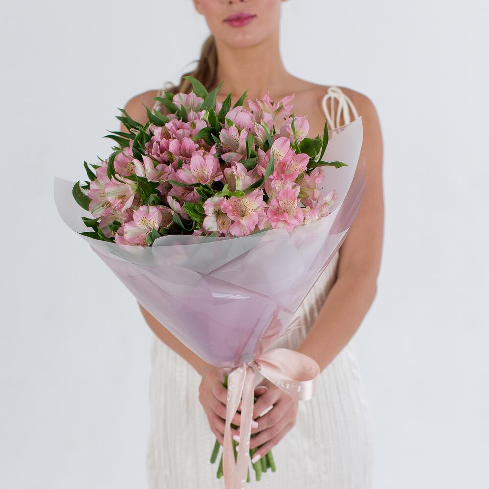 Шикарный букет стойкой нежной альстромерии в розовой гамме! Такой букет будет радовать Ваших любимых долгое время! Рекомендуем ежедневно обновлять срез букета, менять воду и ополаскивать вазу. Удаляйте увядшие лепестки и листья. Используйте подкормку для цветов, чтобы продлить жизнь вашего букета. К букету прилагается:: ⁃ Бесплатная открытка с вашим текстом (по желанию) ⁃ Аквапакет с водой для бережной доставки букета - Транспортировочная коробка