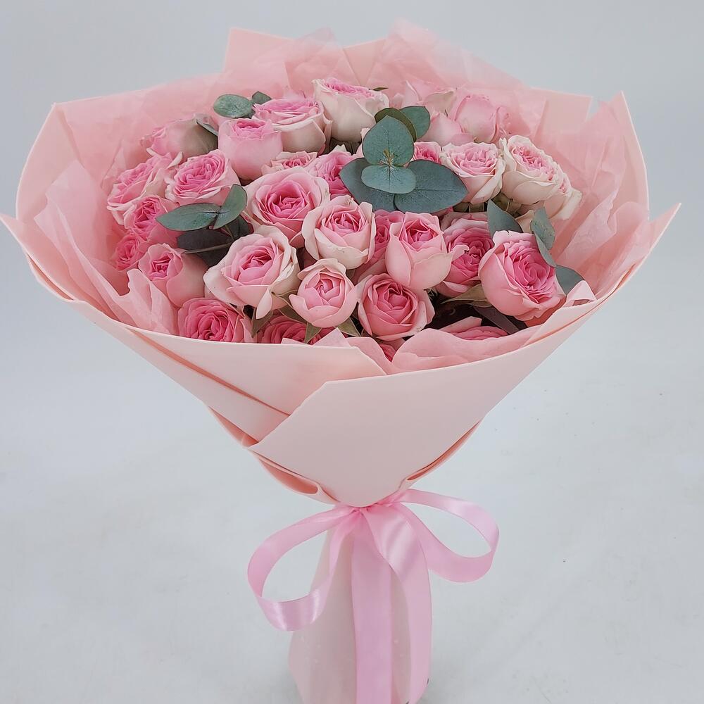 С 14.08.2025 в честь нашего приближающегося дня рождения за каждый оставленный положительный отзыв мы дарим подарки!! 🥳🥳🥳 3% возврат от оплаченной суммы промокодом за ⭐⭐⭐⭐⭐ по всем пунктам и !!5%!! от оплаченной суммы за подробный отзыв с описанием и фото! 📝 Промокод высылается в течении суток после получения отзыва👌🌷 Акция действует до ее отмены. Ажурные кустовые розочки насыщенного розового оттенка с веточками эвкалипта. Такой букет всегда уместен и подойдёт для любого повода: День Рождения, именины, годовщина свадьбы, рождение ребенка, 8 марта, День Святого Валентина, выпускной и т.д. Можно вручить маме, сестре, подруге, коллеге, учителю, любимой.