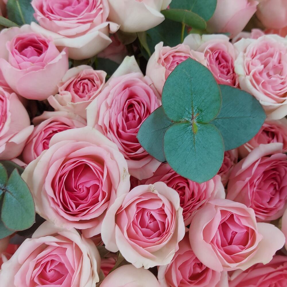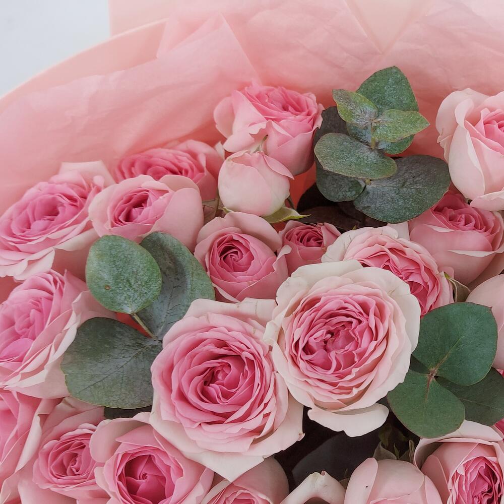Роза кустовая - 9 шт. Эвкалипт - 6 шт. Упаковка дизайнерская - 1 шт.