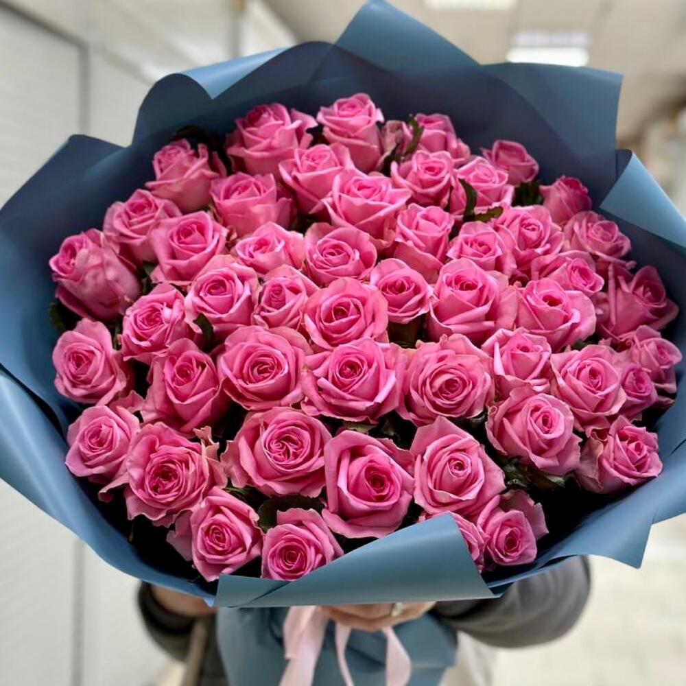 упаковка дизайнерская пленка - 5 шт. роза розовая ревиваль - 49 шт. бант атласный двойной - 1 шт.