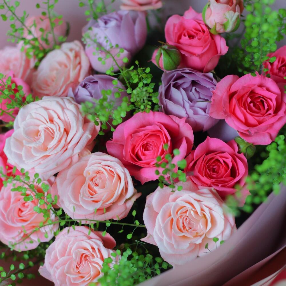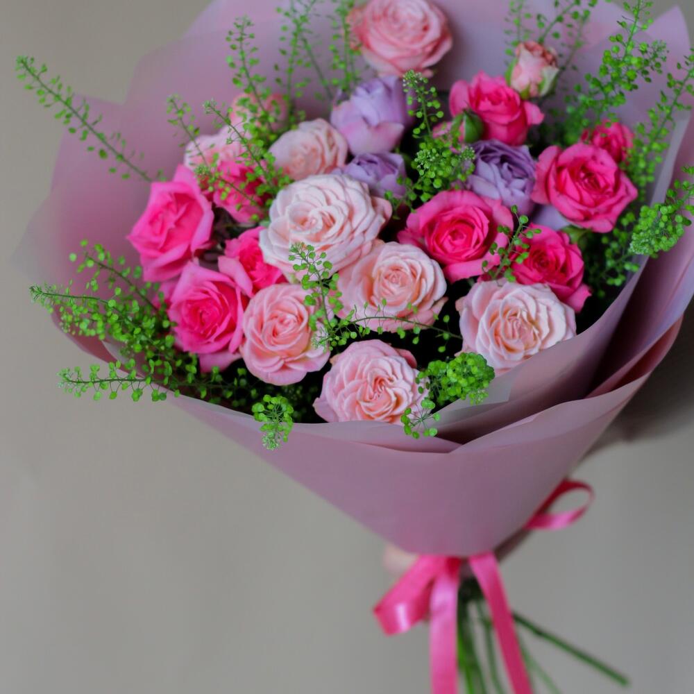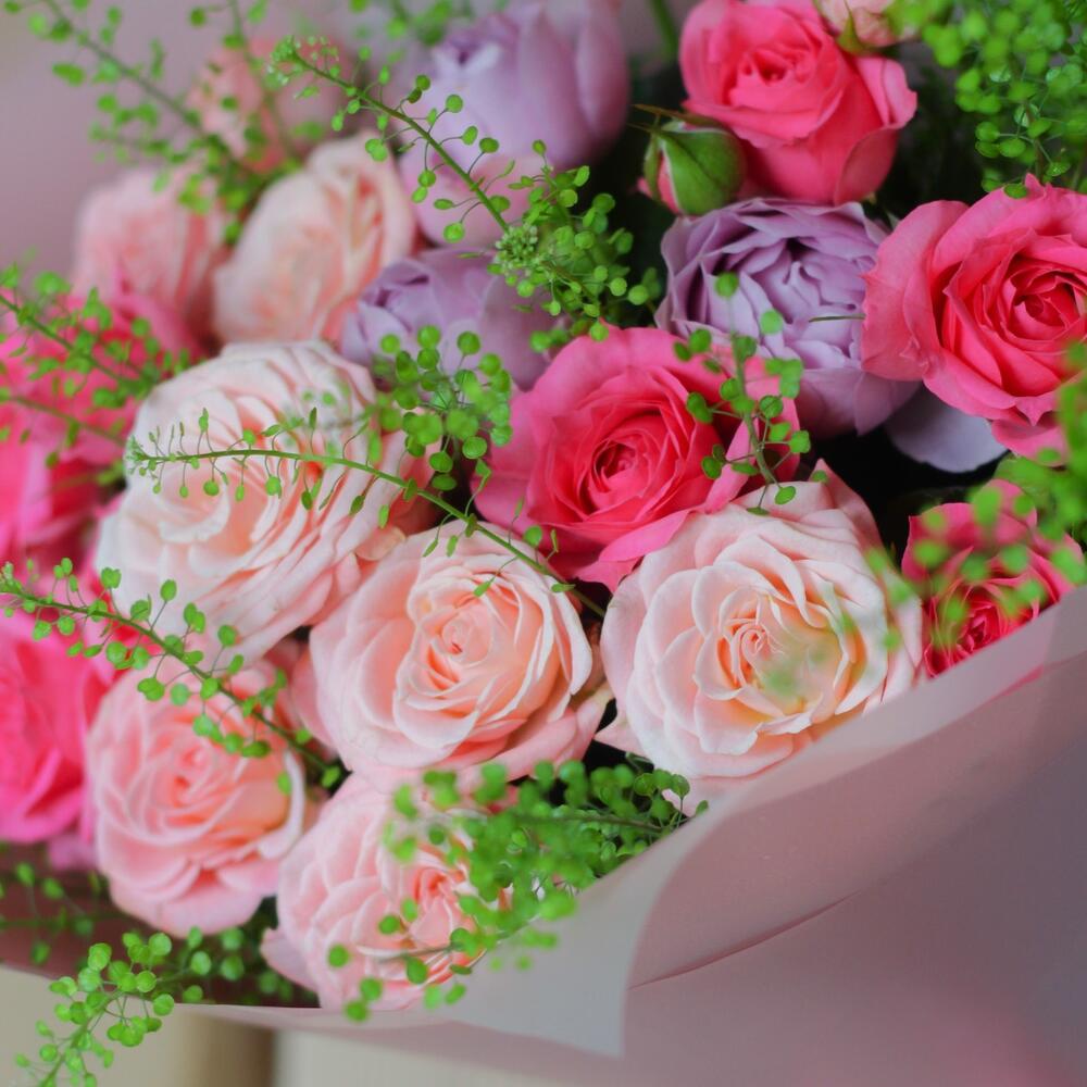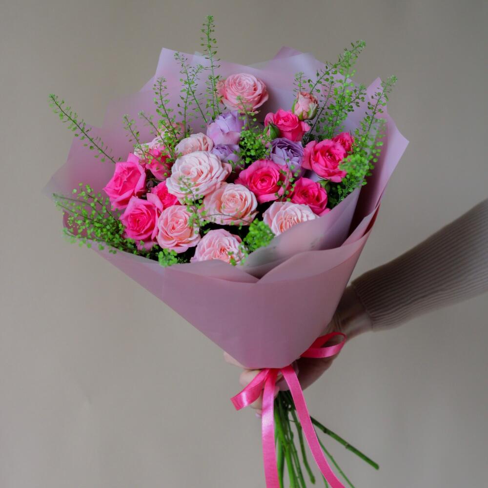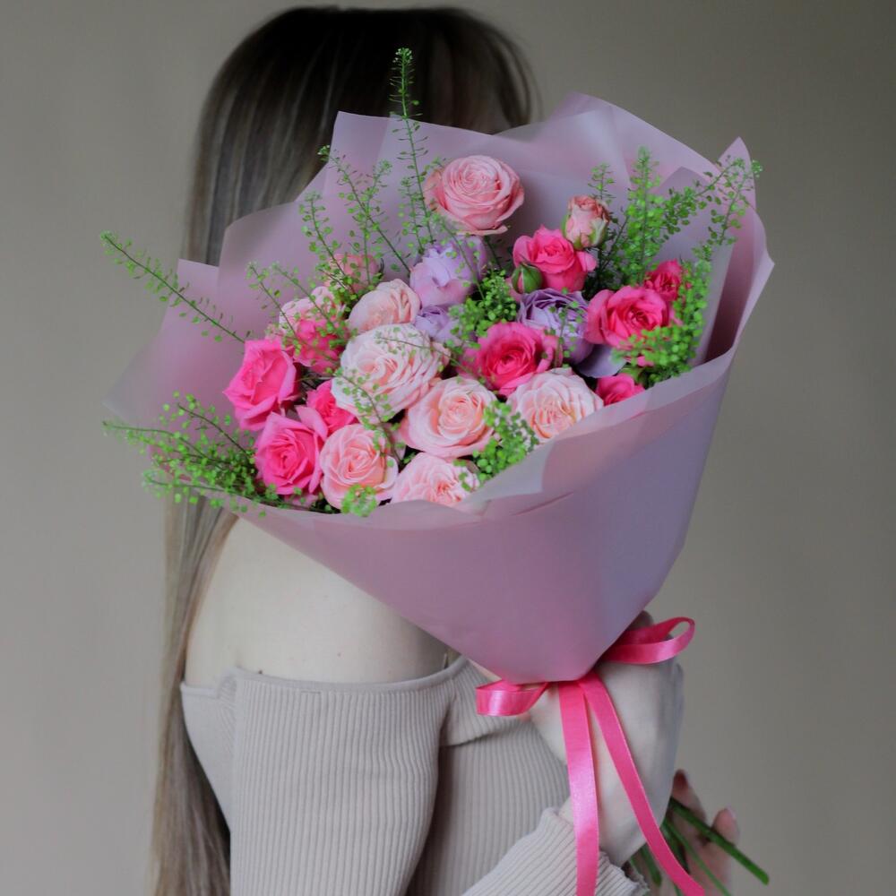 Авторский розовый микс из кустовых пионовидных розочек.Букет 761 Flowering Palm
