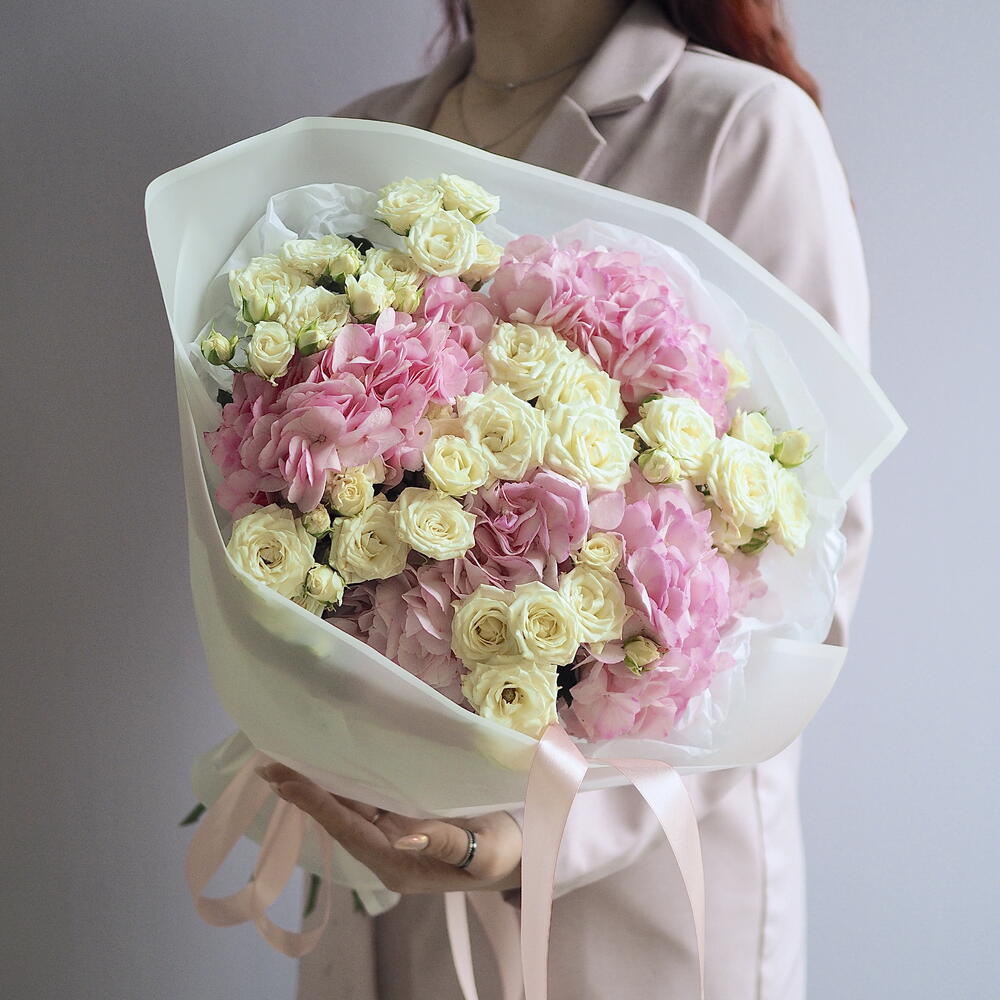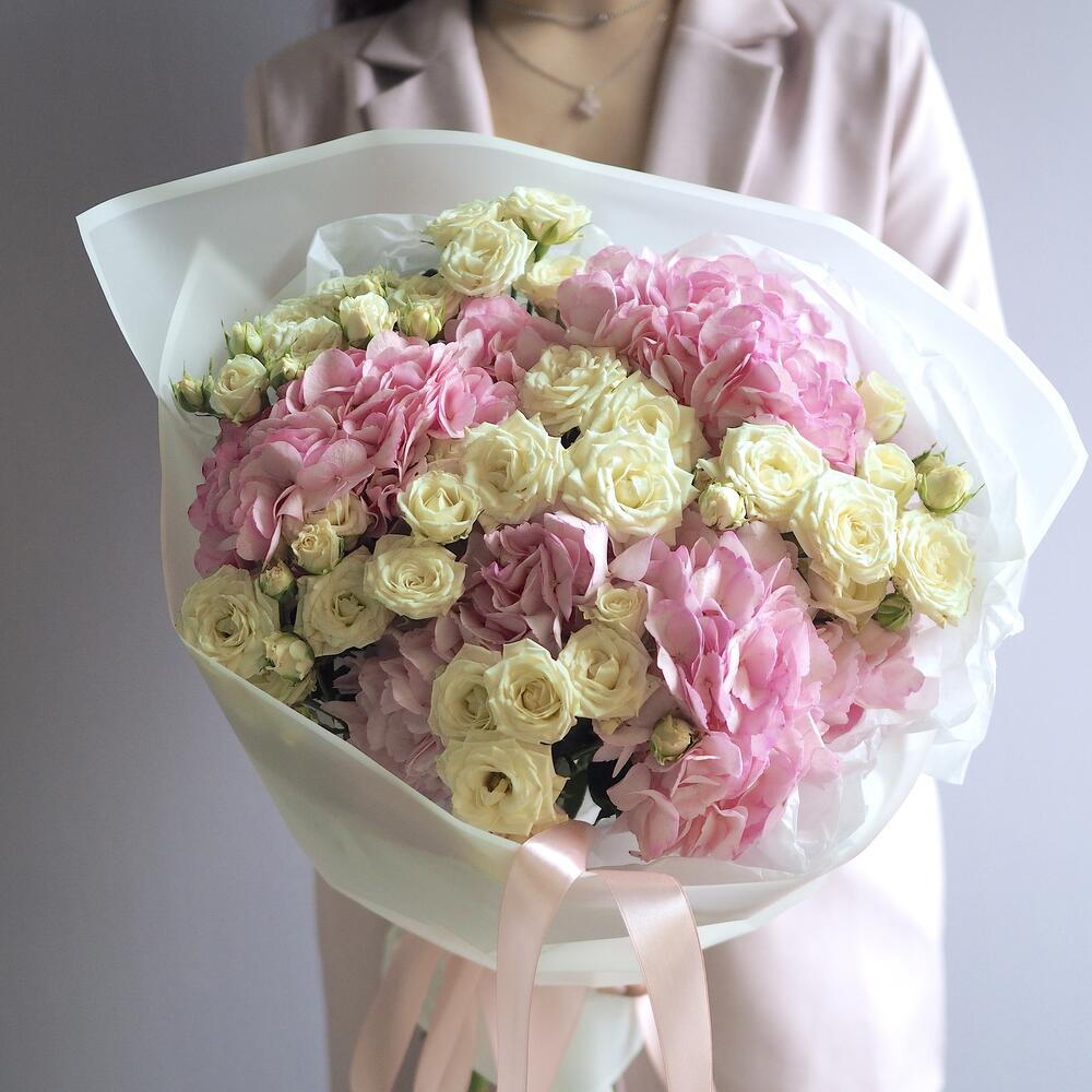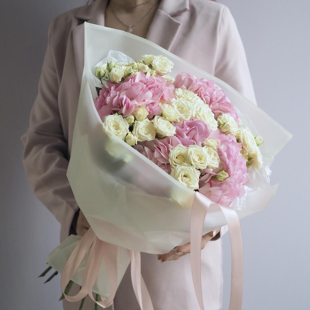 Розовое облако с кустовой розой и гортензией Пышный букет из роз и ярких гортензий. Сборка букета осуществляется по технике «спираль», что придает ему естественность и живость. Букет оформлен в многокомпонентную упаковку, которая придает особый шарм и защищает цветы от внешних воздействий.Отличный подарок на День Святого Валентина. ✨ Состав: Гортензия - 3 шт. Роза кустовая - 9 шт. Дизайнерская упаковка - 1 шт. Преимущества, при заказе букета в нашем магазине – вы получите: - Свежие цветы премиум-качества - Красивая и стильная упаковка с в современном стиле - Быстрая доставка цветов по Всей Москве. 💫 Кому преподнести букет: любимой девушке, супруге, невесте, маме, матери, коллеге, учителю, сестре, жене, любимой девушке Цветочный магазин, букет цветов, французские розы, доставка цветов, цветы с доставкой, заказать цветы, купить цветы, доставка цветов Москва, цветы Москва, заказ цветов Москва, fmart, flowwow,,доставкацветовмосква, цветымосква, быстраядоставка, доставкаонлайн, подарокдлялюбимой, дарисмело, дляродныхилюбимых, цветы, флористика, цветочныймагазин, заказатьбукетонлайн, цветыбыстро, цветиисияй, деньрождения, подарокнагодовщину, подарокнасвадьбу, цветыдлядевушки, цветыдлямамы, цаетыдляколлеги, цветыдлябабушки, цветыдлясестры, доставкацветовповсеймоскве, радуйлюбимых, дарилюбовь, длявлюблённых, восьмоемарта, 8марта, деньматери, рождение, свадьбы, юбилей, деньроссии, пасха, 14февраля, деньфлагароссии, выпускные, выпускныеизшкол, выпускныеиздетсадов, деньсемьи, деньотца, деньсемьилюбвииверности, деньнезависимости, новыйгод, 1сентября, деньучителя, деньвоспитателя, 1мая, праздниквесныитруда