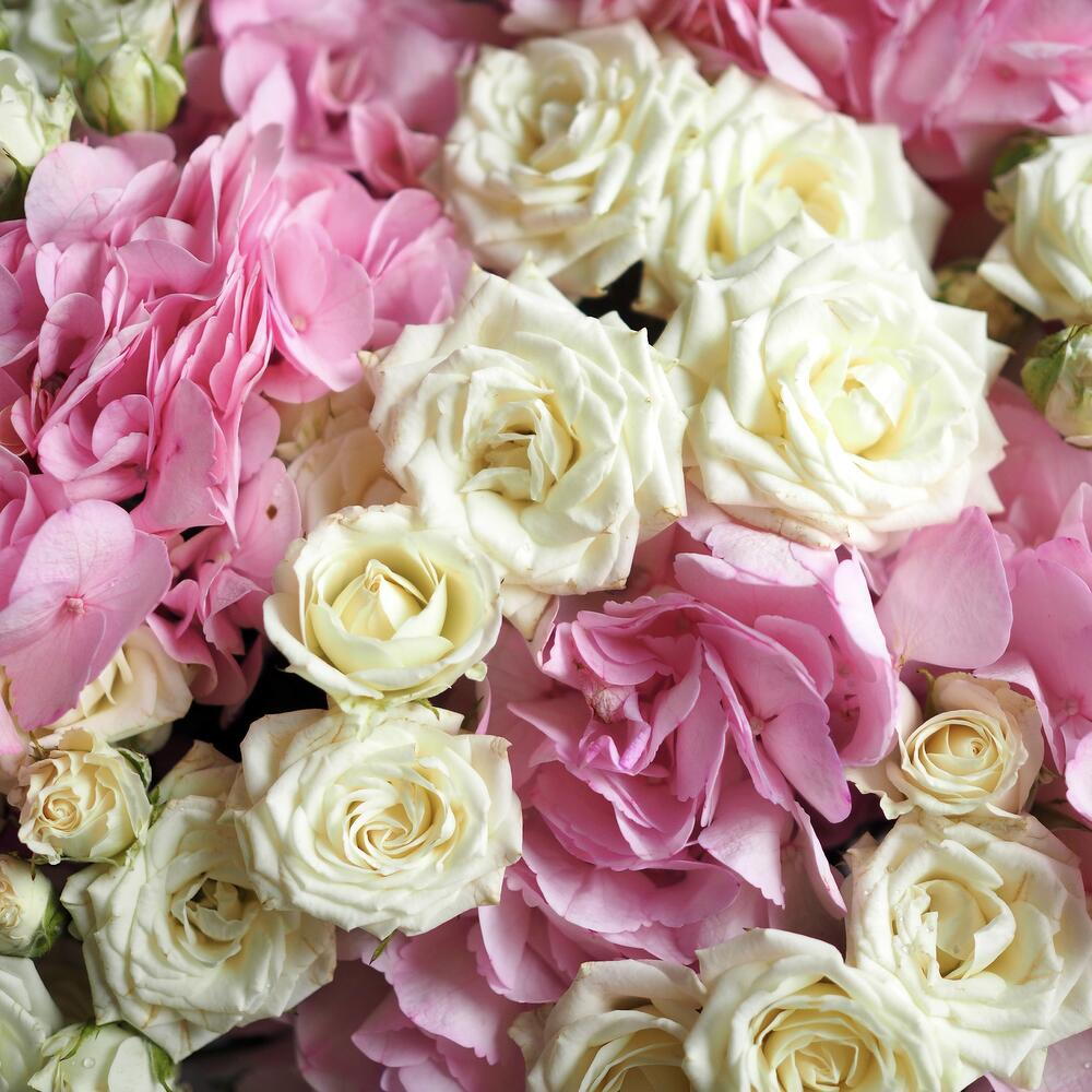 Гортензия - 3 шт. Роза кустовая - 9 шт. Упаковка - 1 шт.