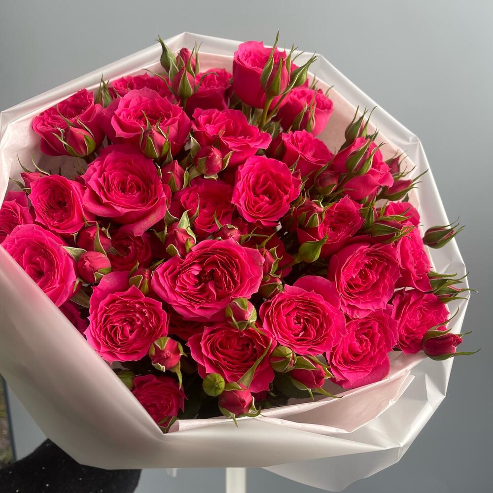 Тишью - 2 шт. Кустовая пионовидная роза - 9 шт. Пленка матовая - 2 шт.