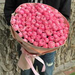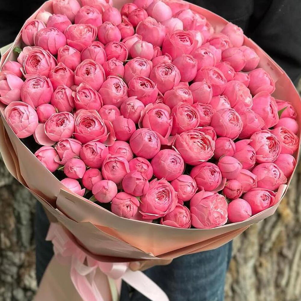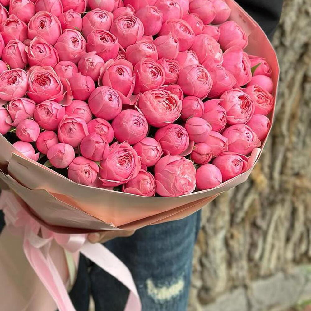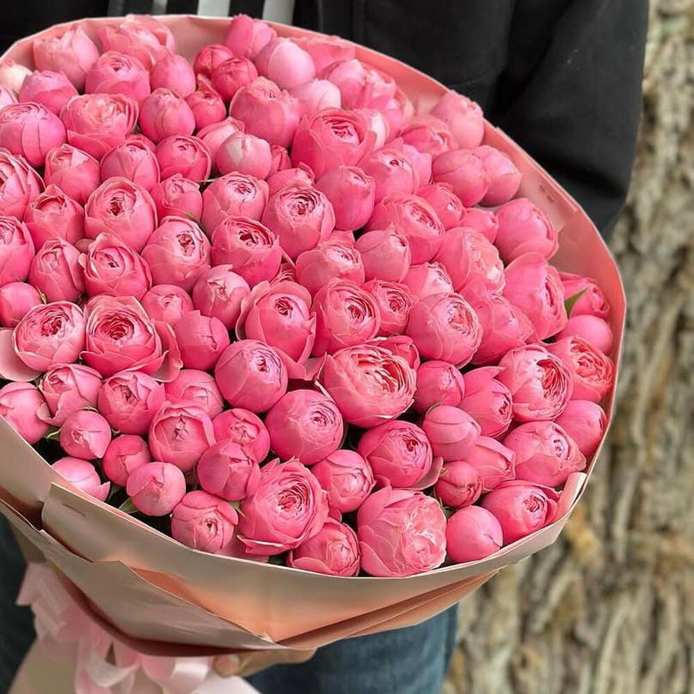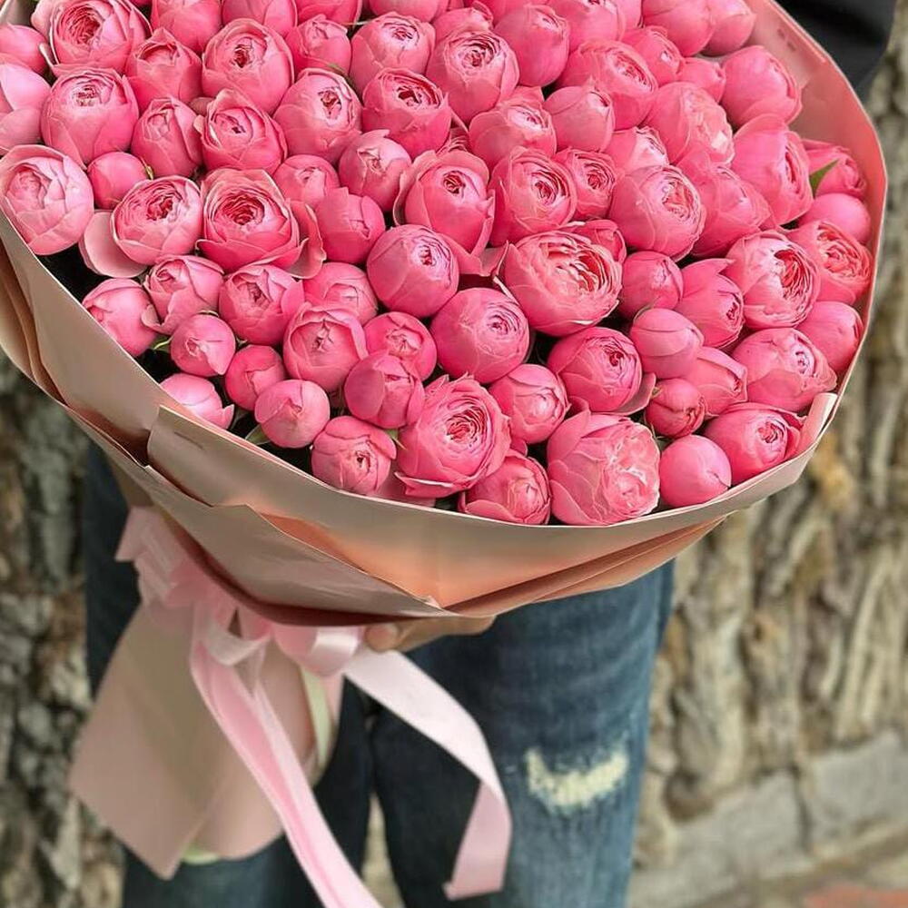 Наши преимущества * Личный менеджер, который курирует заказ от начала до вручения * Согласование фото букета перед отправкой и возможность внести изменения по вашему желанию * Дополнительные подарки — сладости, шары, помощь в организации сюрпризов * Красивая упаковка, аквабокс и поздравительная открытка — бесплатно Прекрасный свежий букет из розовых пионовидных роз в красивой упаковке с быстрой доставкой по городу в течение часа — отличный способ порадовать близкого человека, устроив сюрприз. Такой букет подойдёт * на выписку в роддом ✓ Для любимой девушки или супруги ✓ Для мамы или родных ✓ Для подруги или коллеги ✓ Для свадебных торжеств и юбилеев