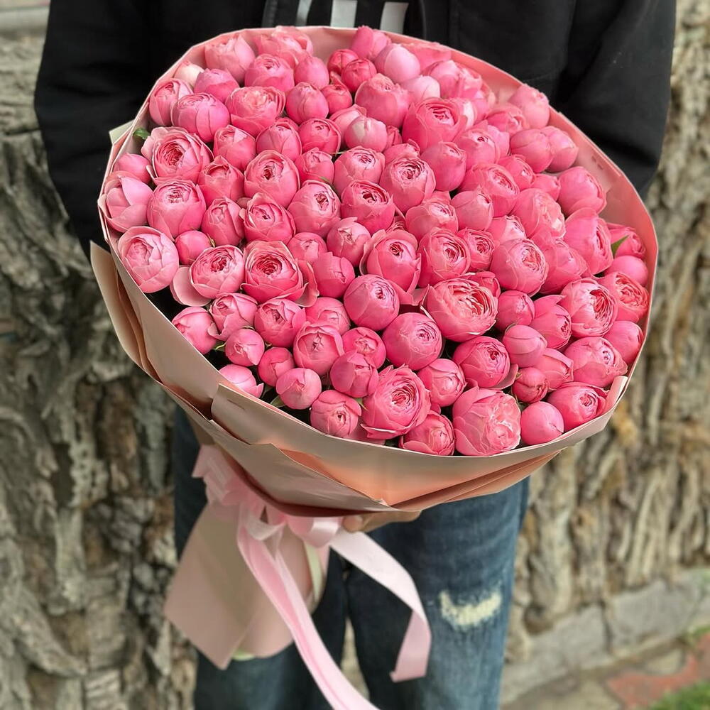 Розовые пионовидные розы 101 шт
