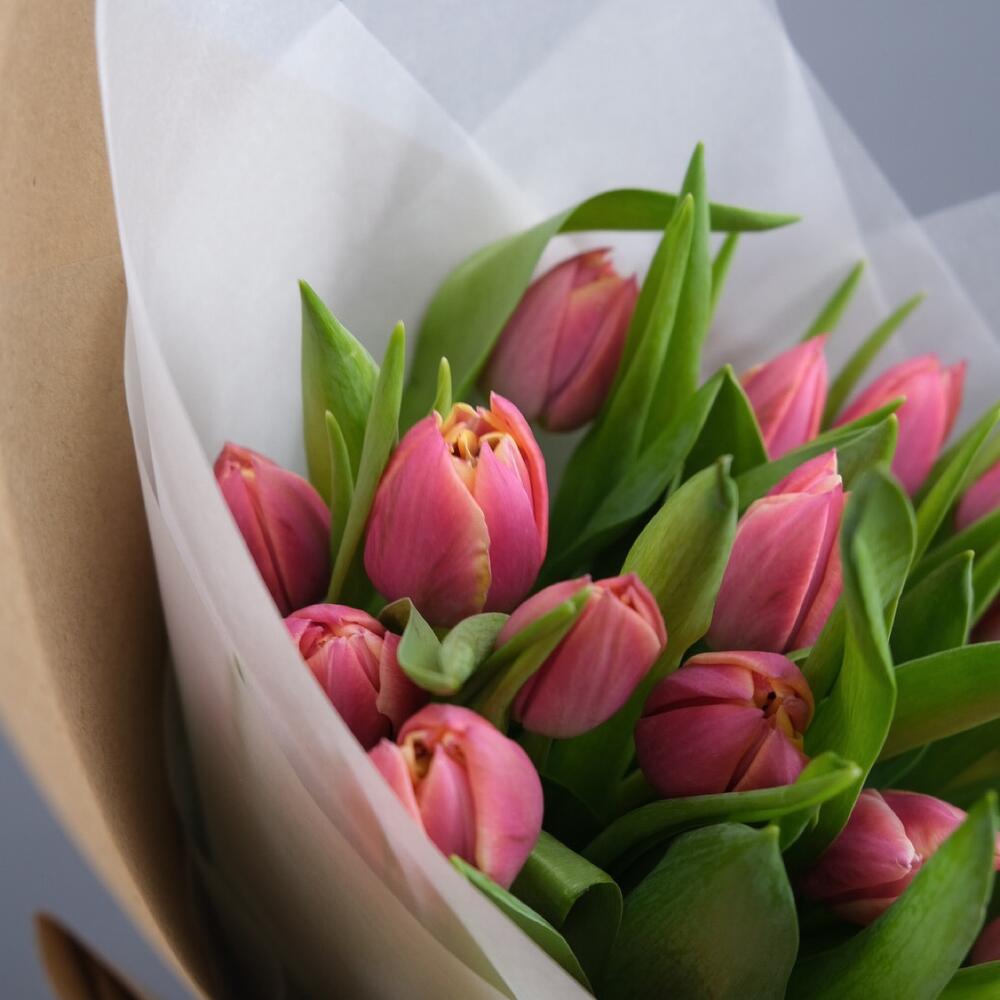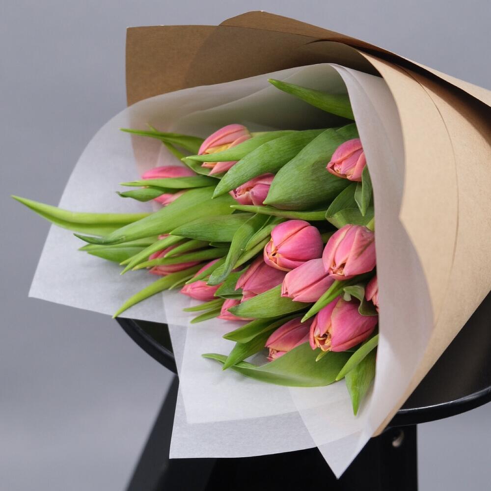 Весенний монобукет из 15 хрустящих розовых тюльпанов 🌷