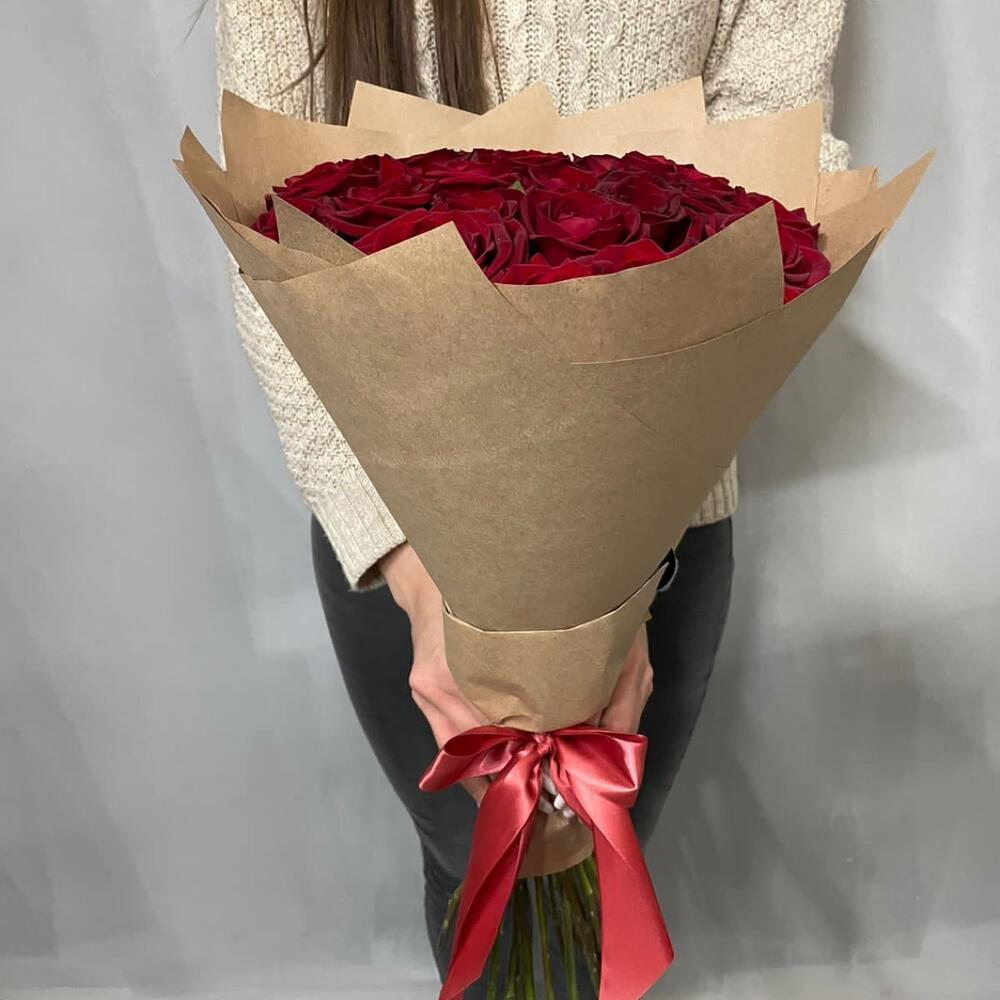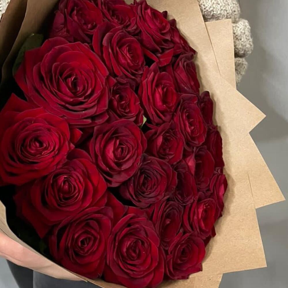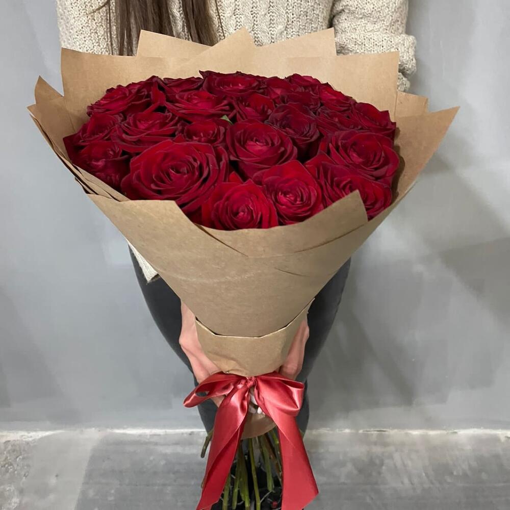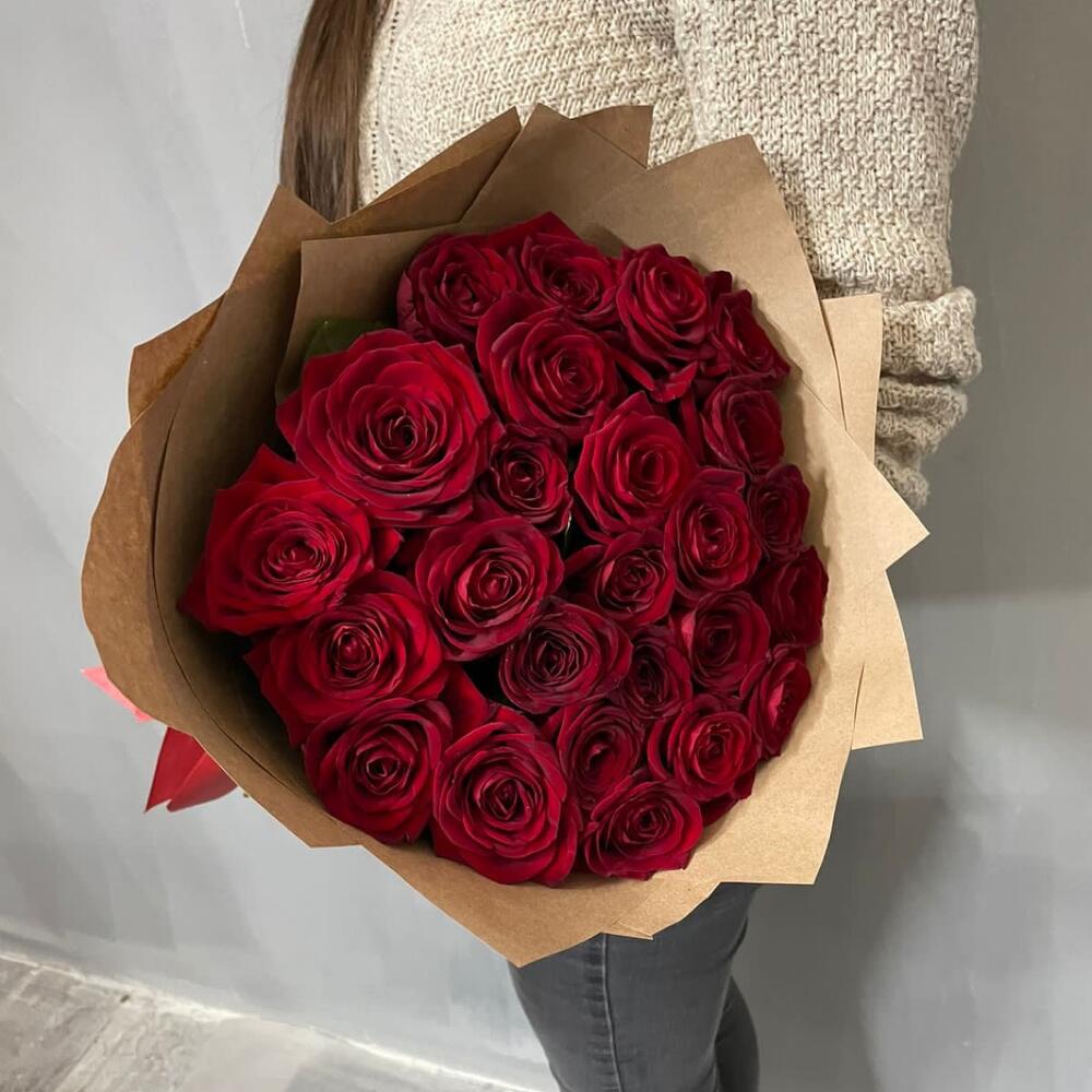 Упаковка дизайнерская - 1 шт. бант атласный - 1 шт. розы - 25 шт.