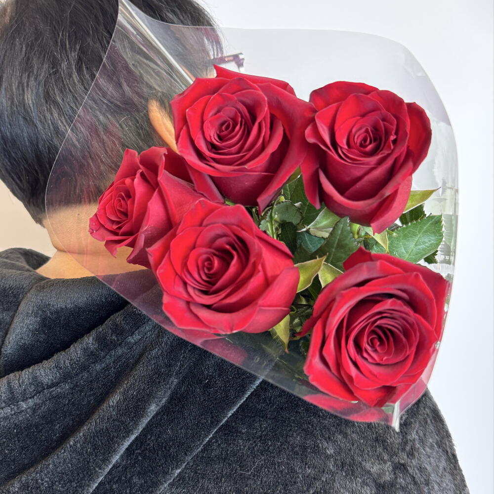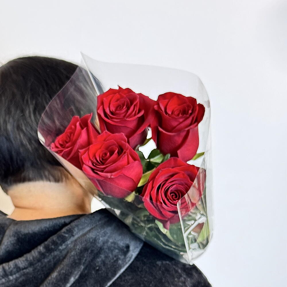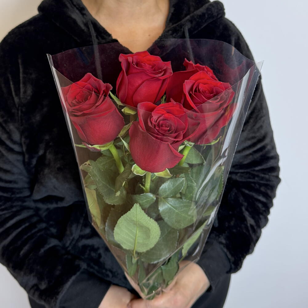 Лента пластиковая - 1 шт. Конус упаковка - 1 шт. роза красная 60 см эквадор - 5 шт.