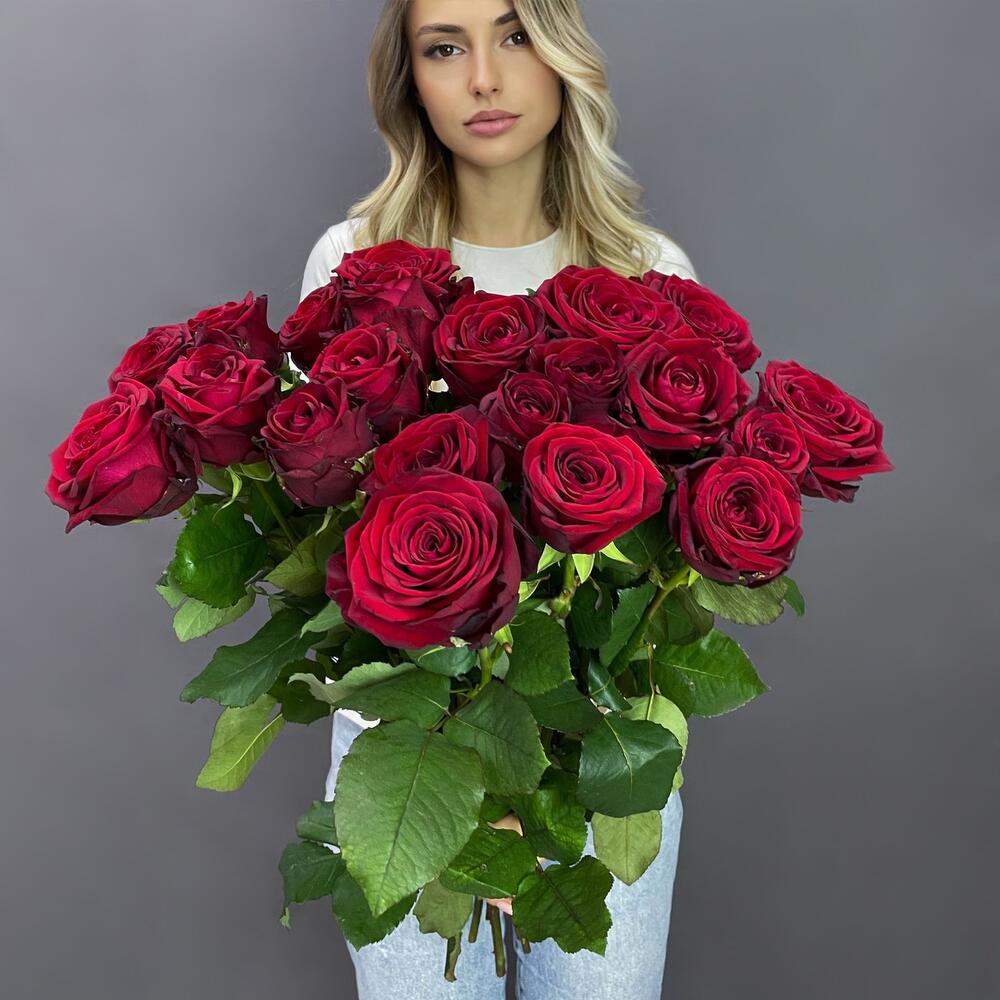 Букет из 20 красных роз сорта Red Naomi - это роза идеального красного цвета с нежным, бархатистым оттенком. Это единственная красная роза с большим соцветием, имеющая тонкий, неповторимый аромат роз. Бережно соберем букет лентой или упакуем в крафт и доставим по адресу. Добавим открытку с текстом по желанию.